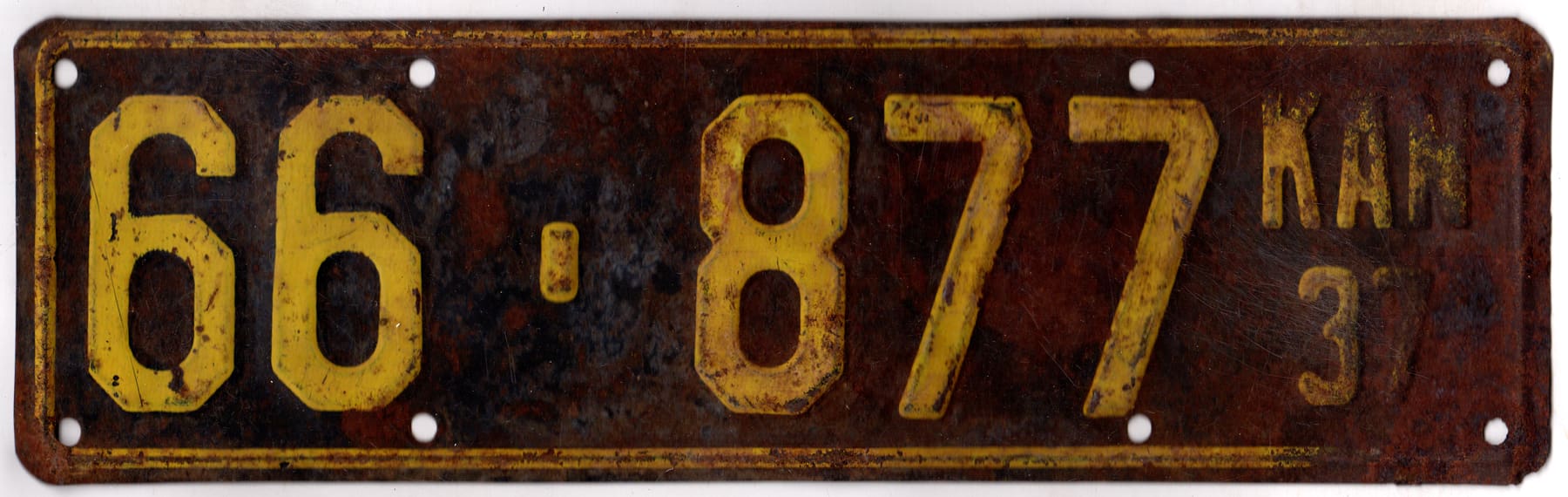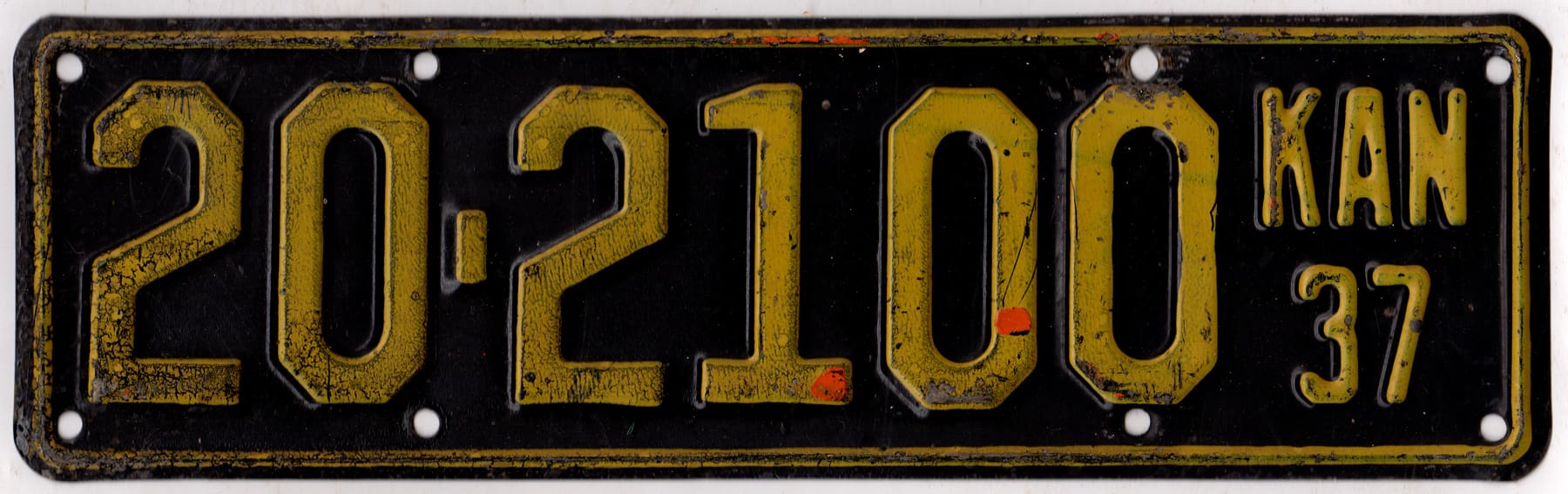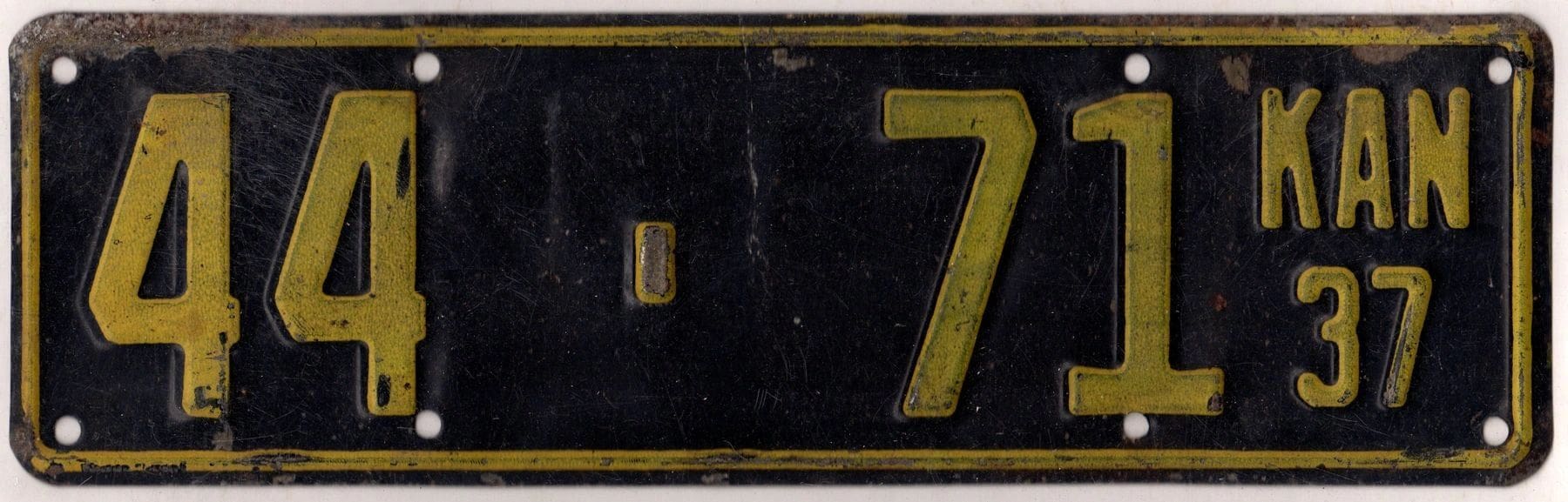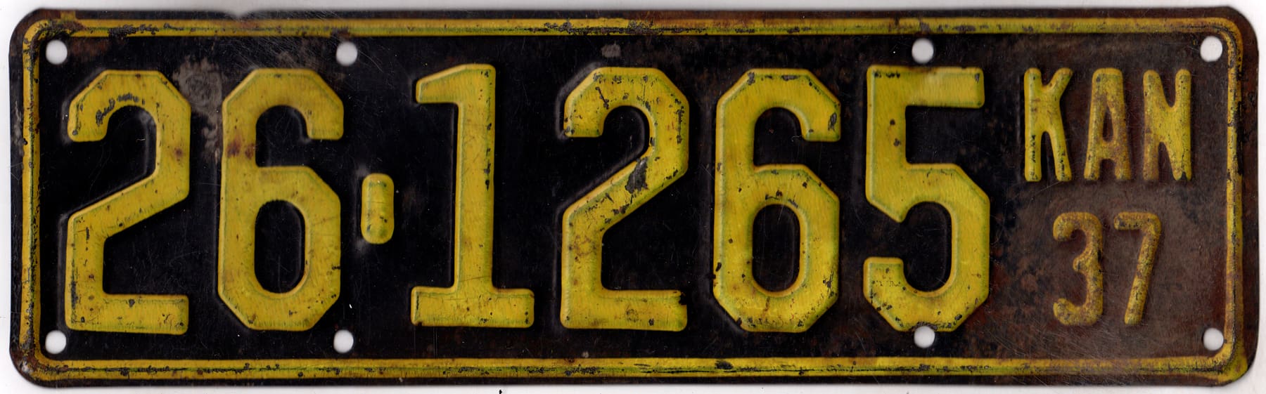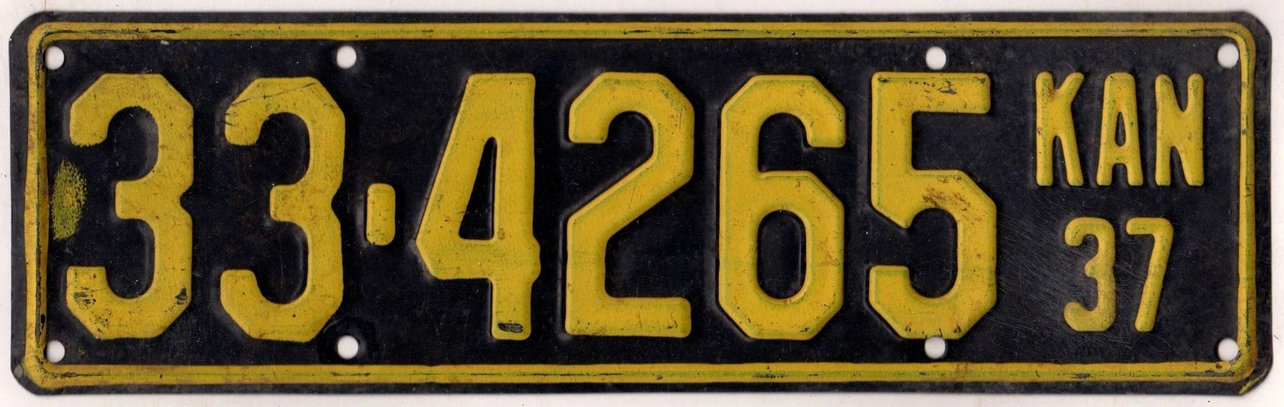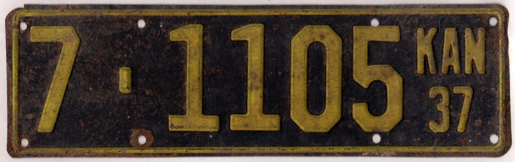 Kansas 1937 car license plate Leavenworth county #7-1105
