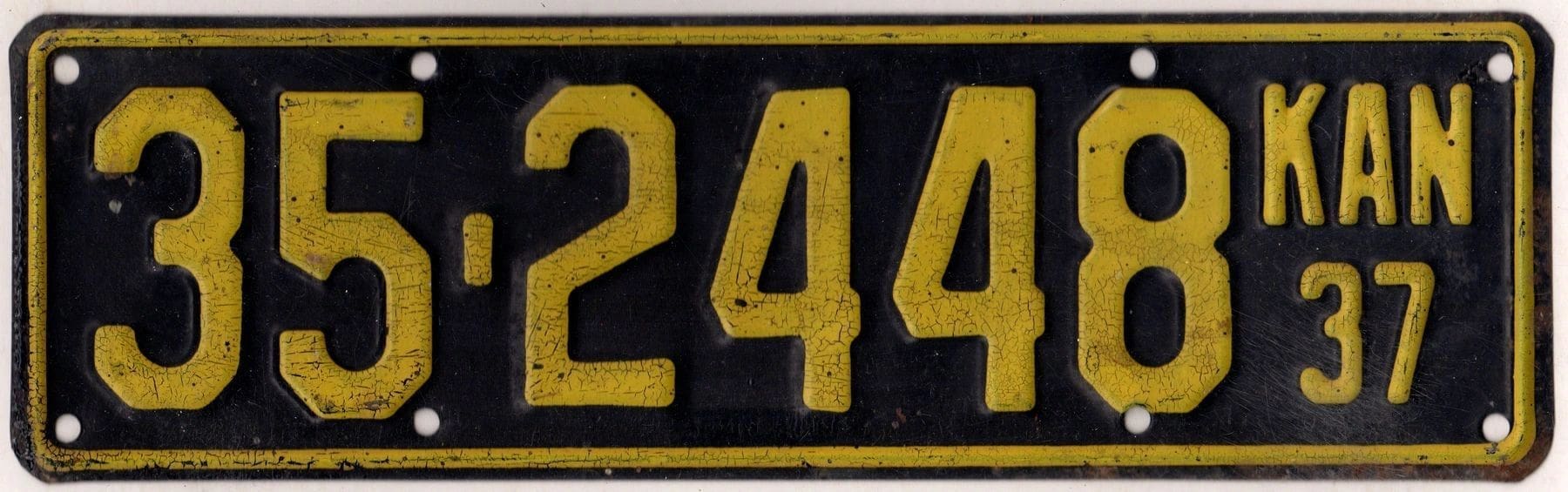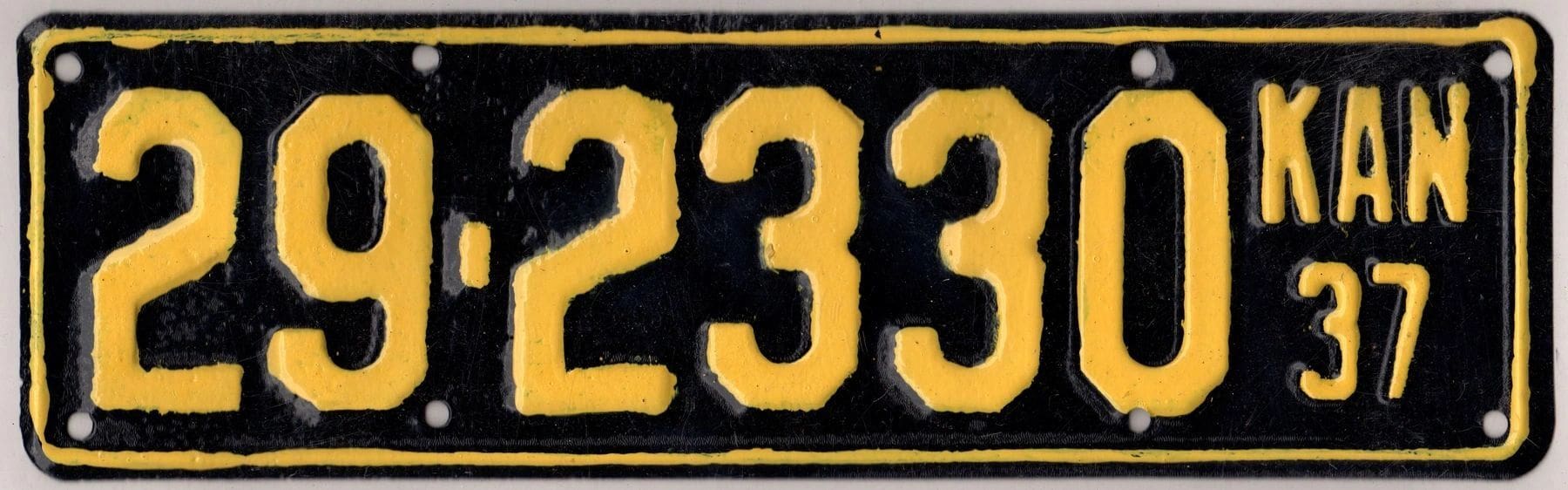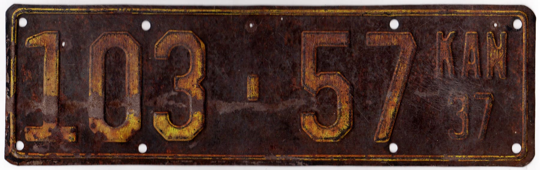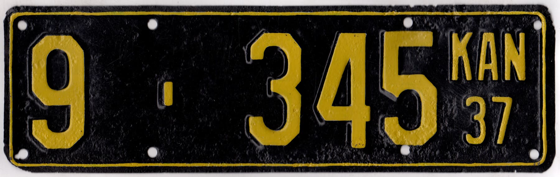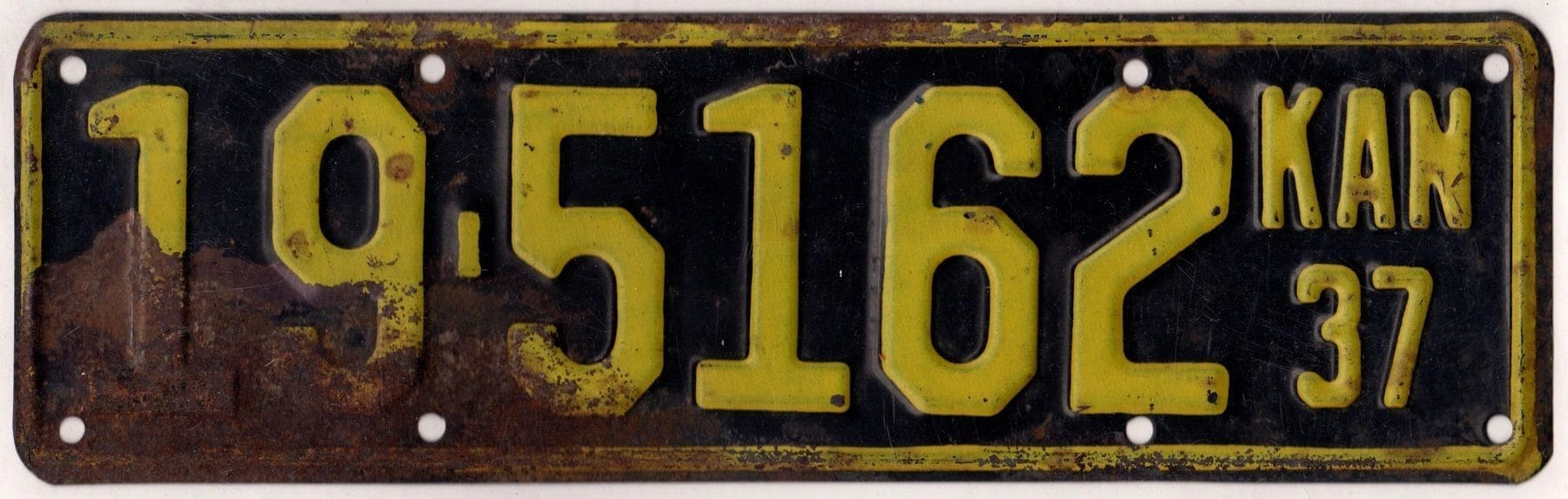 Kansas 1937 car license plate Leavenworth county #7-1105