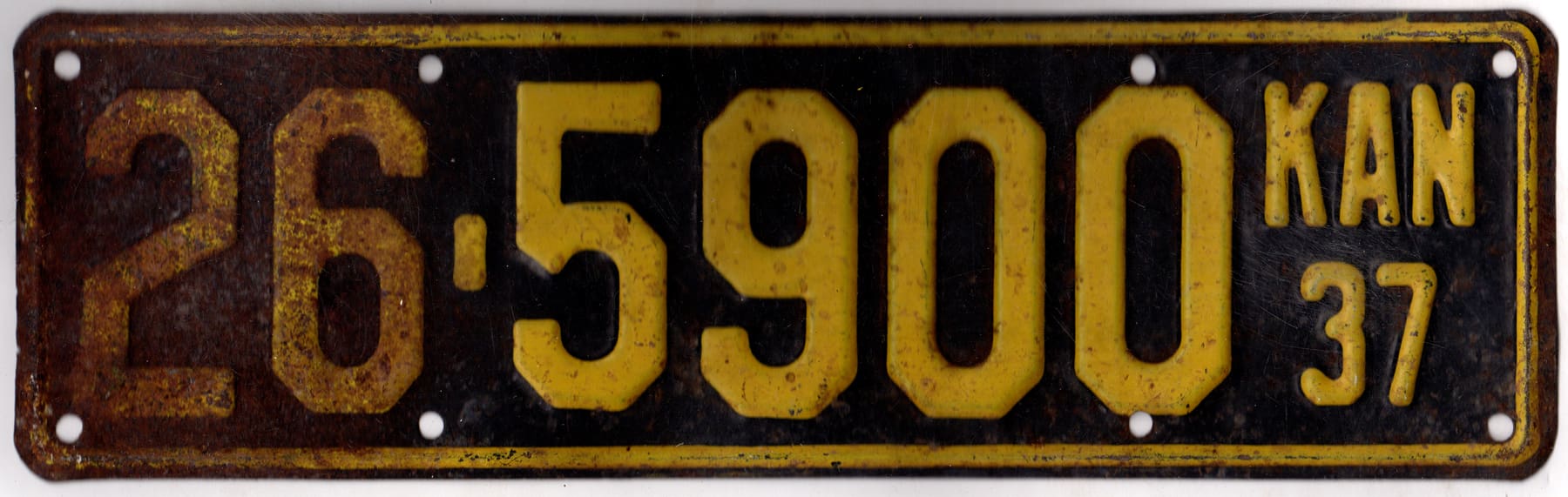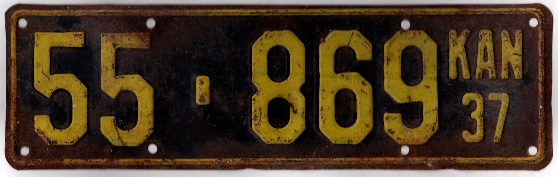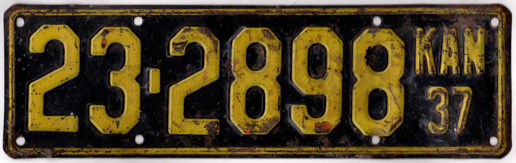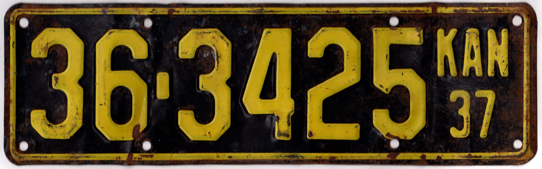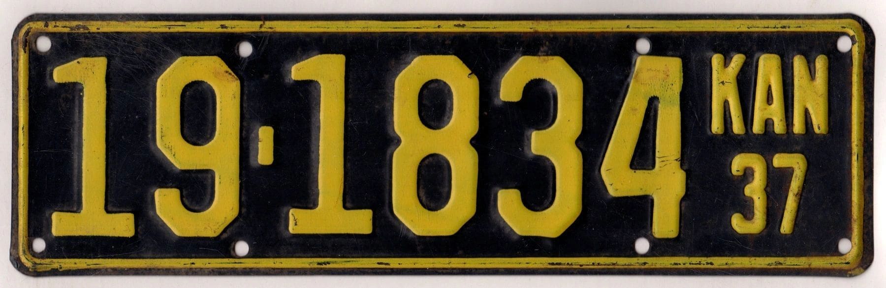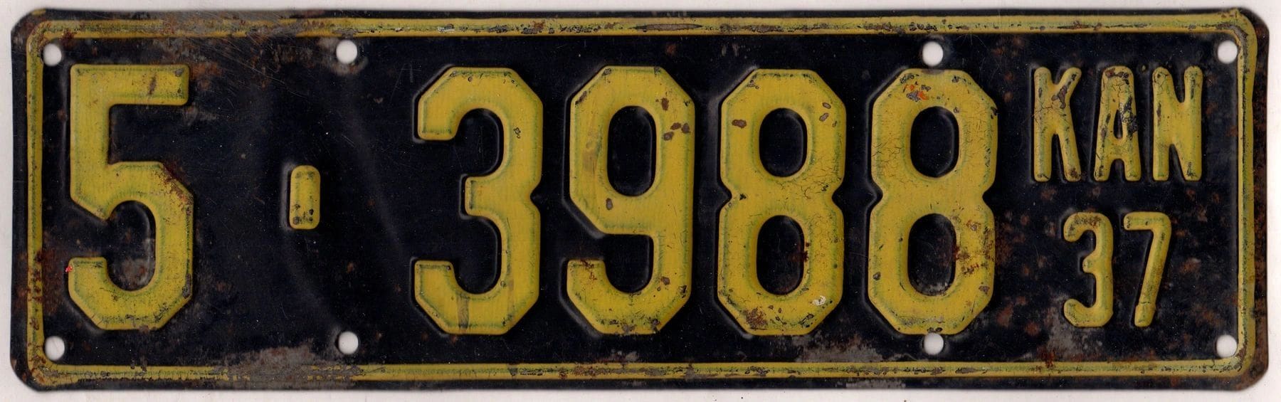 Kansas 1937 car license plate Leavenworth county #7-1105