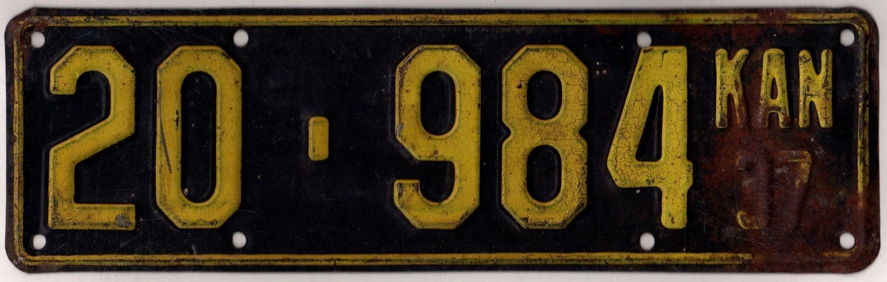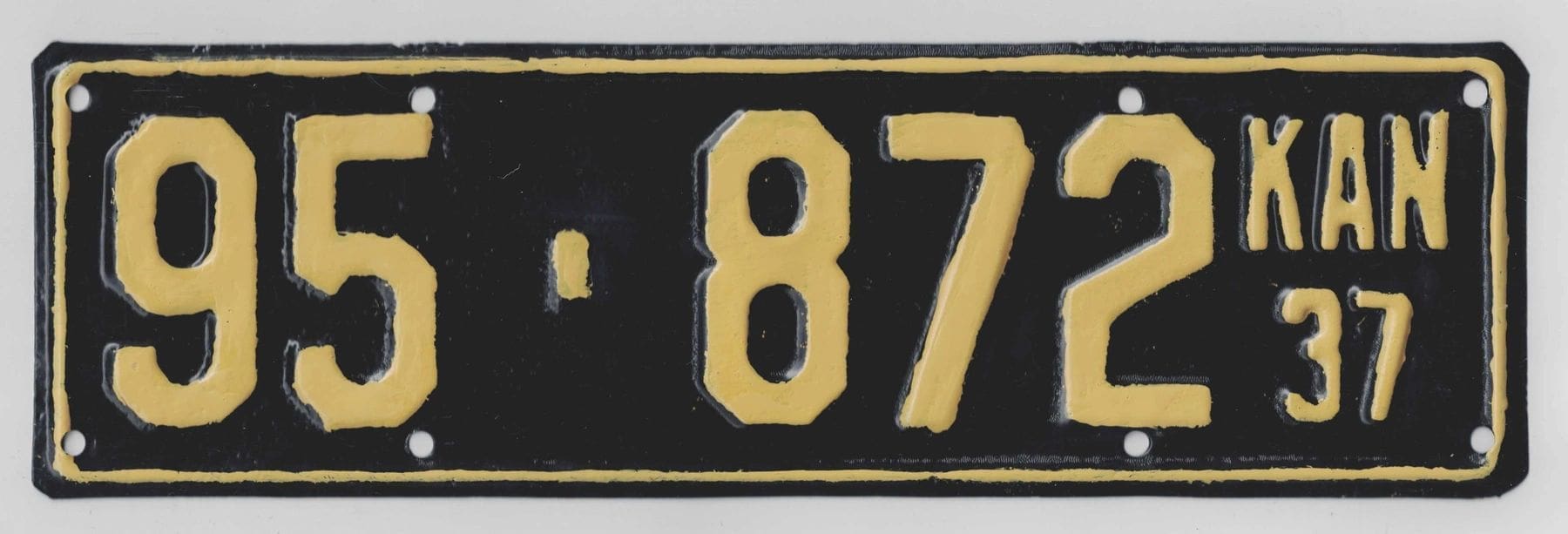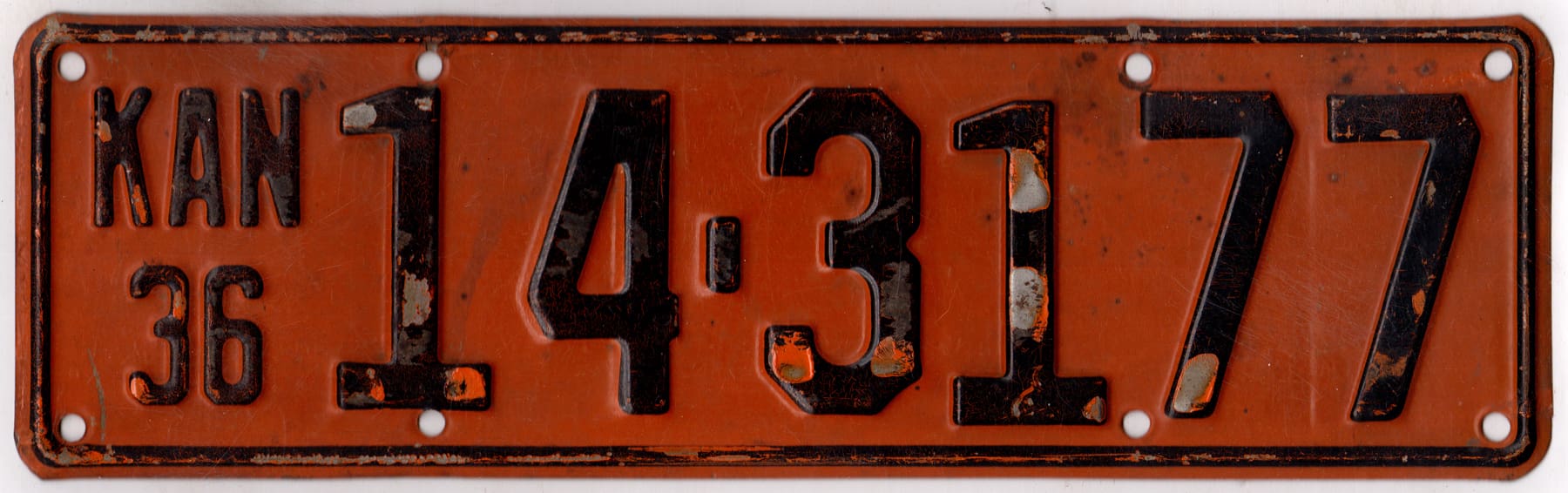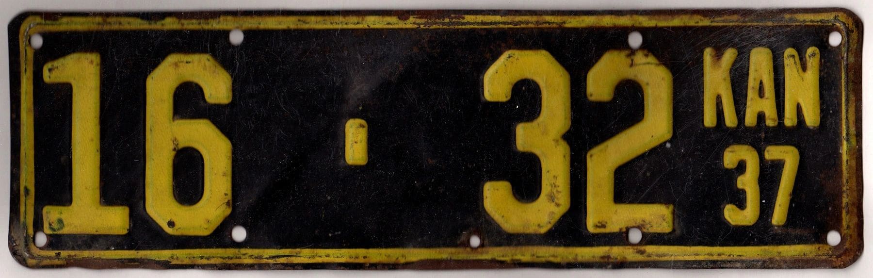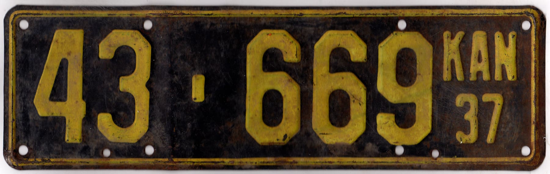 Kansas 1937 car license plate Leavenworth county #7-1105