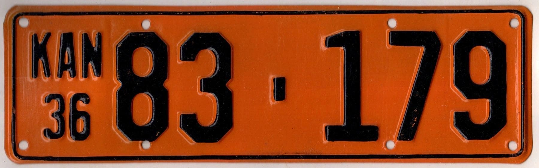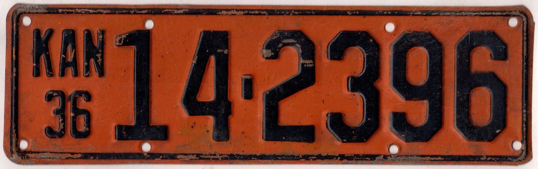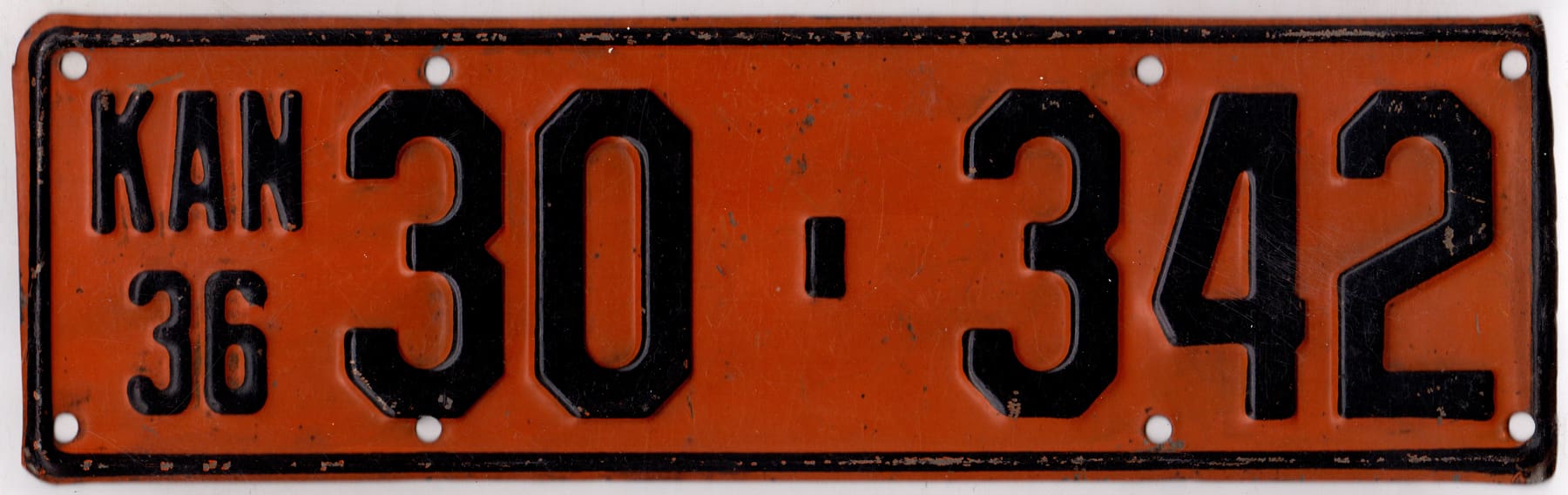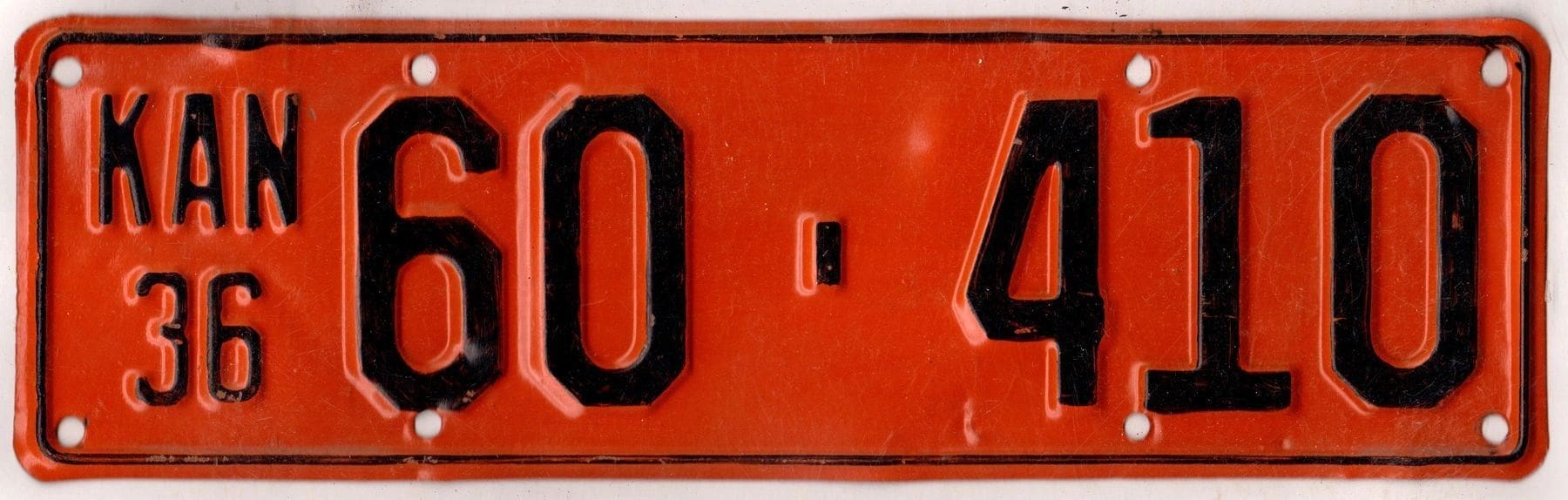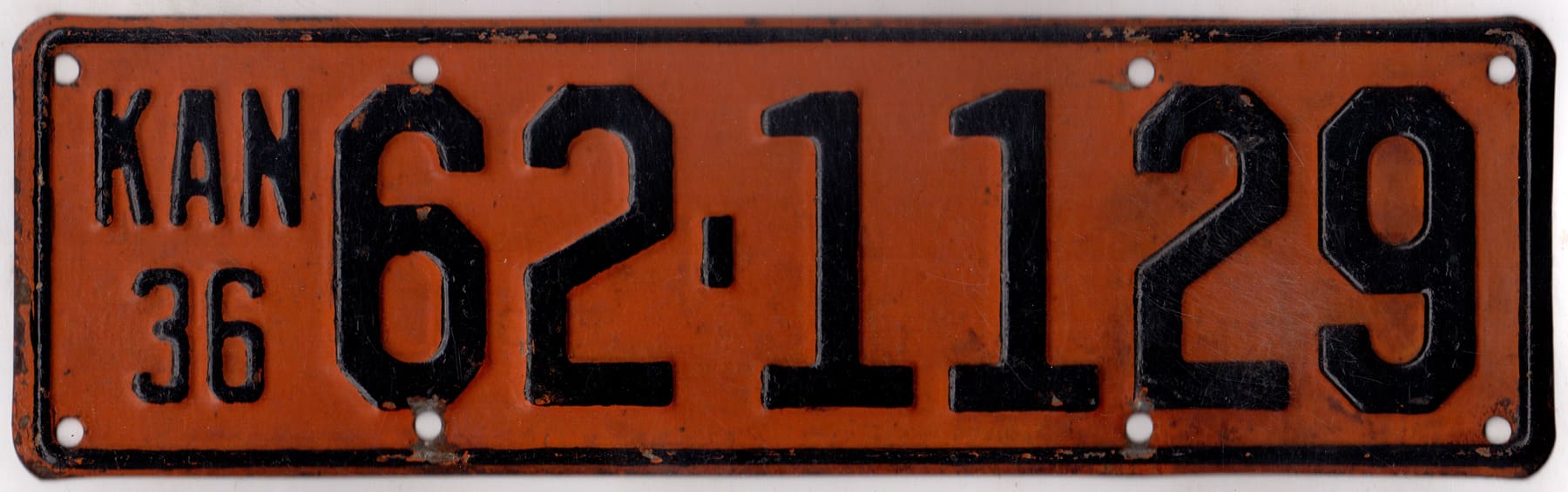 Kansas 1936 car license plate Wabaunsee county #62-1129