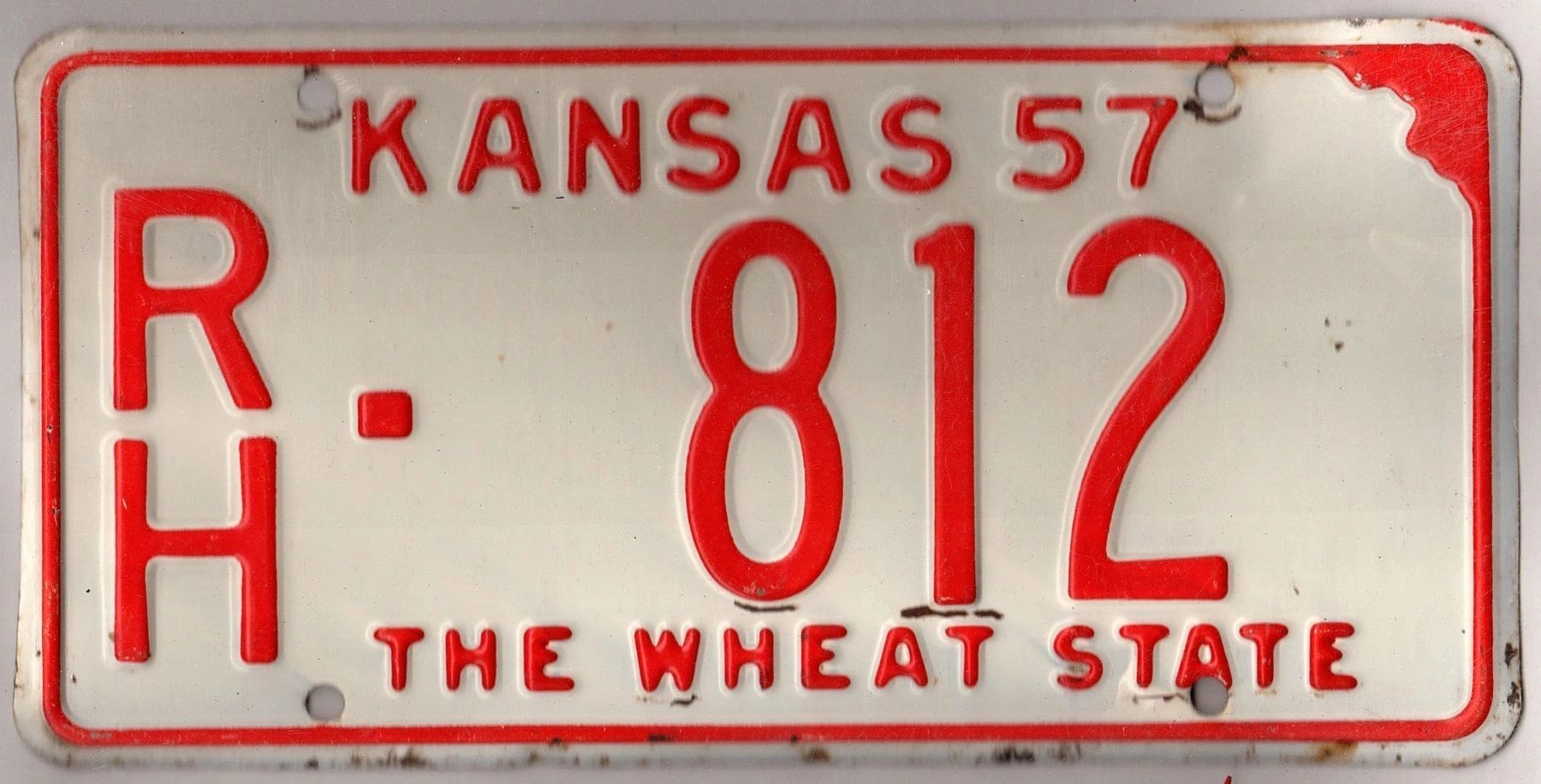 Kansas 1957 car license plate Rush county #RH-812