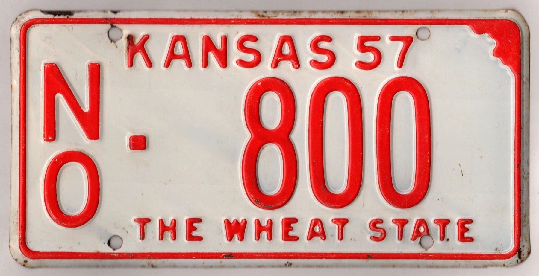 Kansas 1957 car license plate Neosho county #NO-800