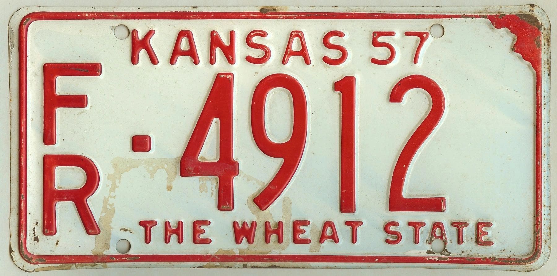 Kansas 1957 car license plate Franklin county #FR-4912