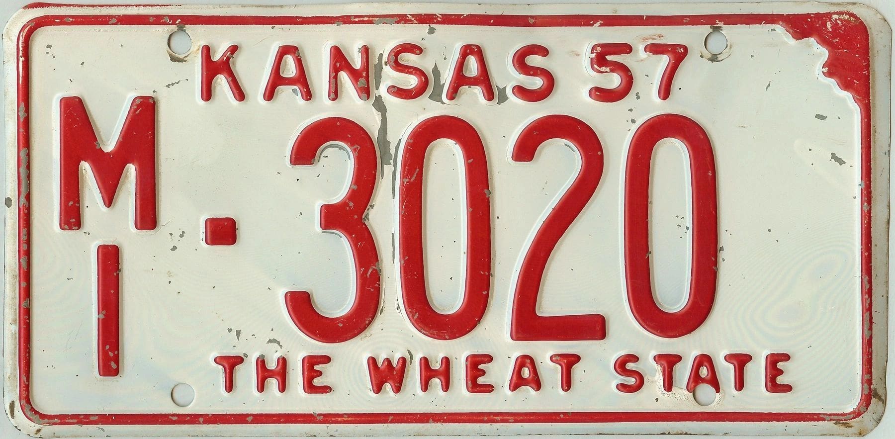 Kansas 1957 car license plate Miami county #MI-3020