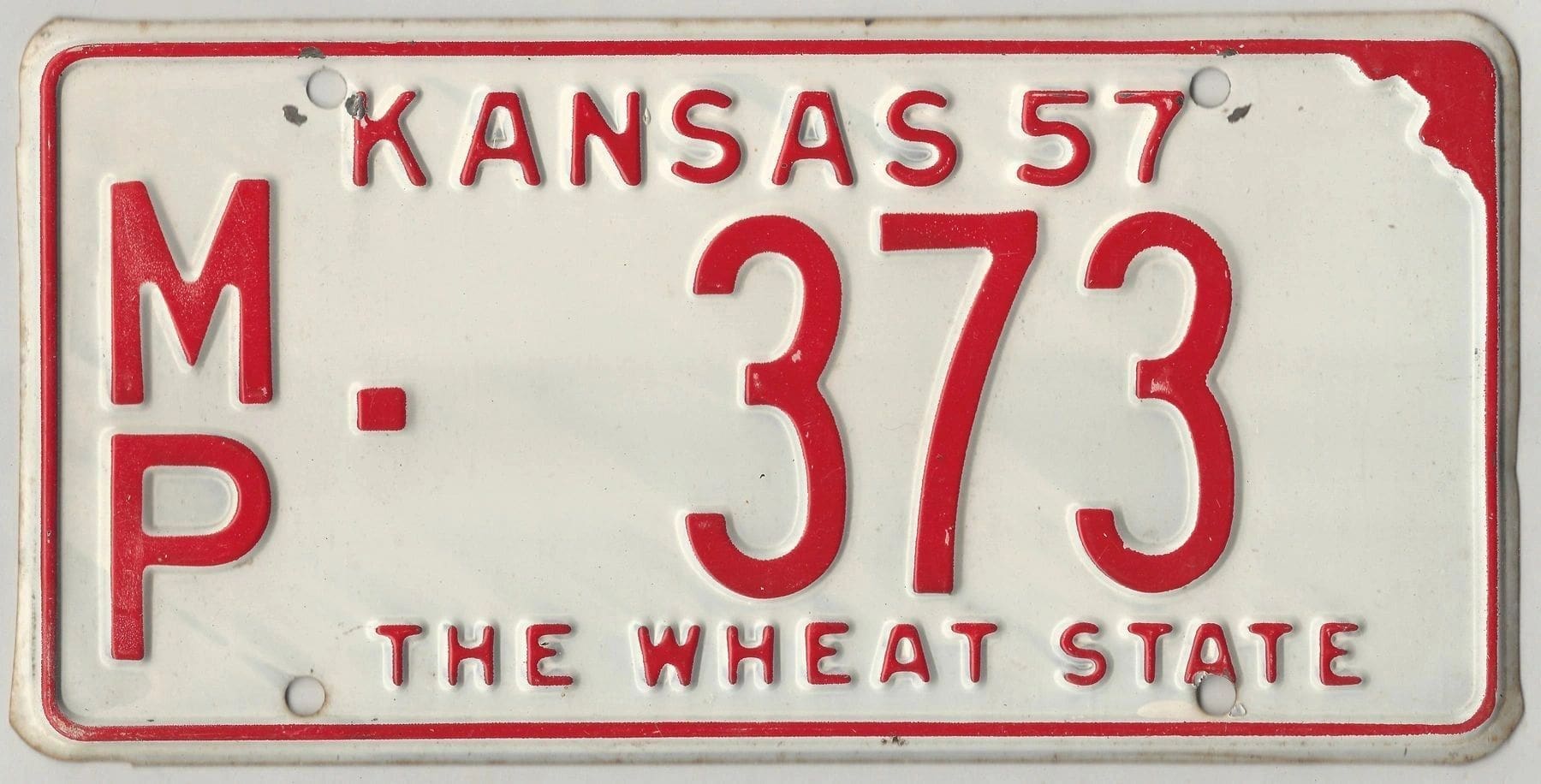 Kansas 1957 car license plate McPherson county #MP-373