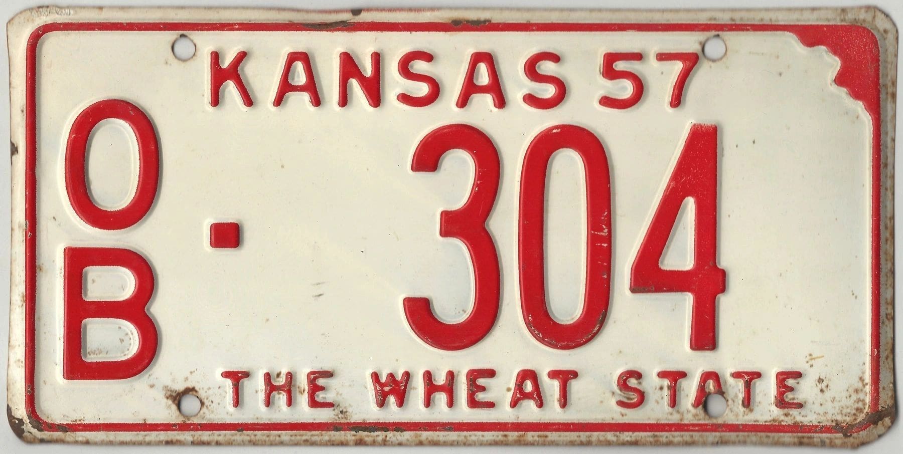 Kansas 1957 car license plate Osborne county #OB-304