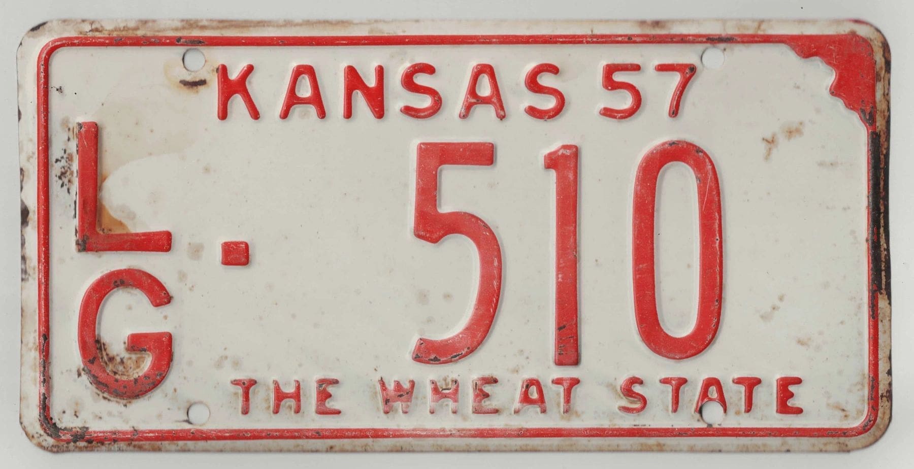 Kansas 1957 car license plate Logan county #LG-510