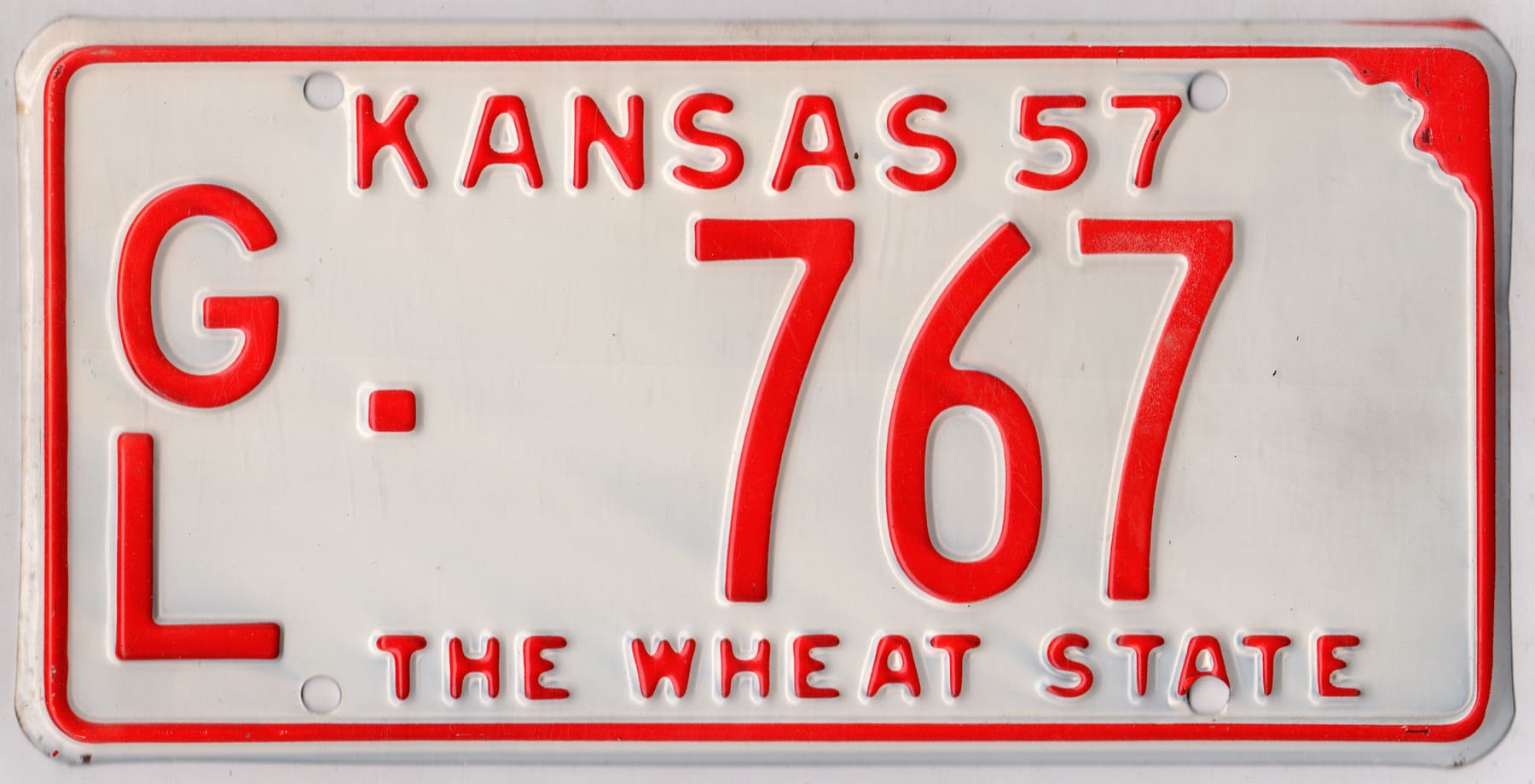 Kansas 1957 car license plate Greeley county #GL-767