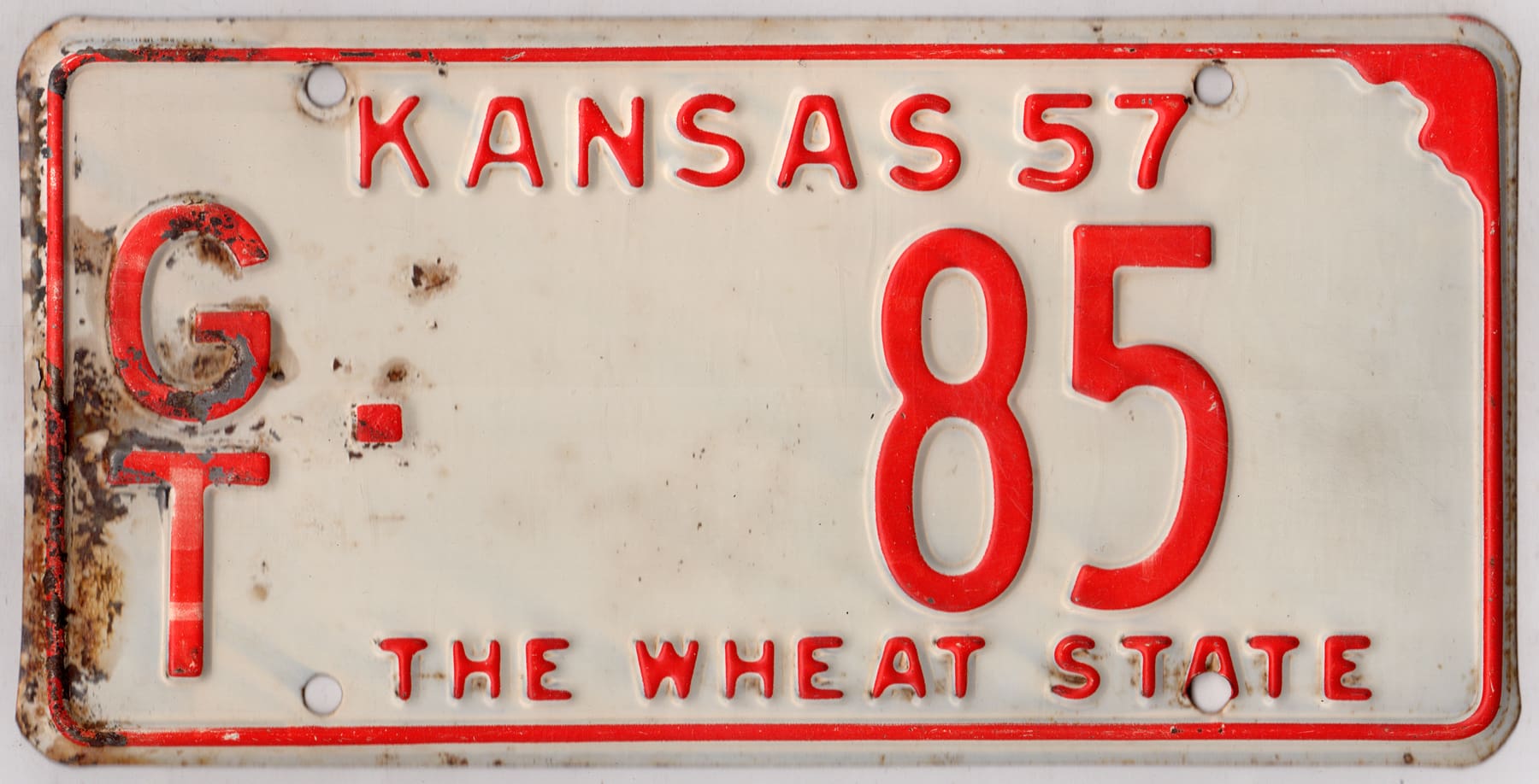 Kansas 1957 car license plate Grant county #GT-85