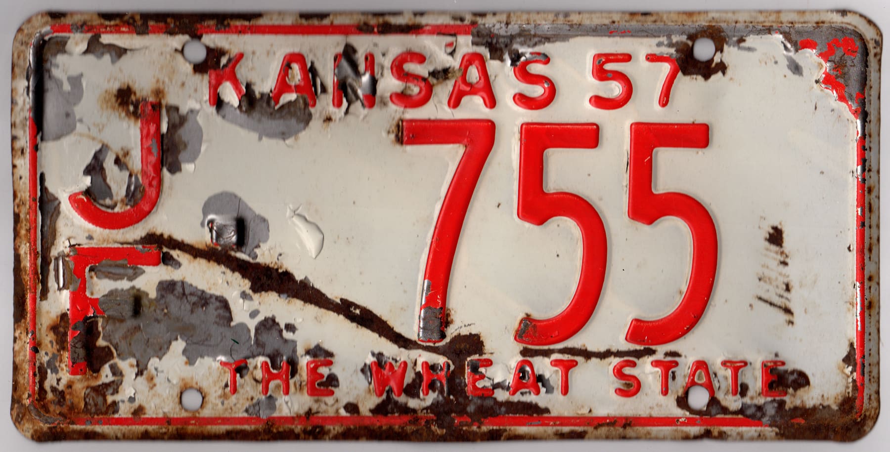 Kansas 1957 car license plate Jefferson county #JF-755