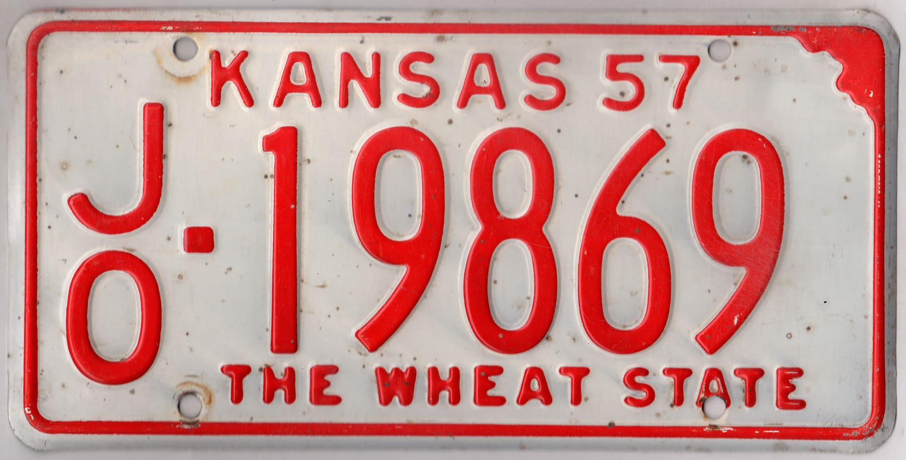 Kansas 1957 car license plate Johnson county #JO-19869