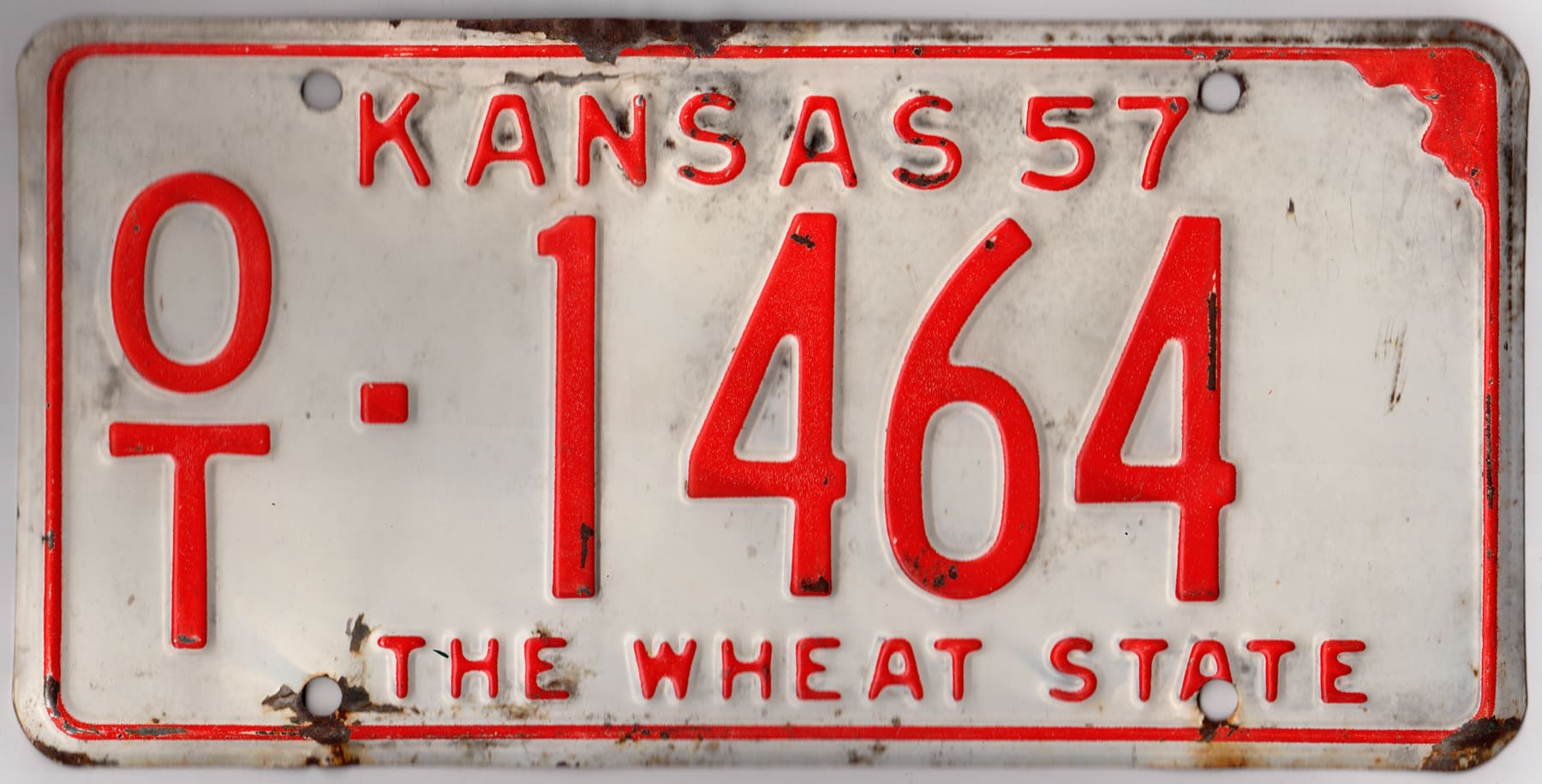 Kansas 1957 car license plate Ottawa county #OT-1464