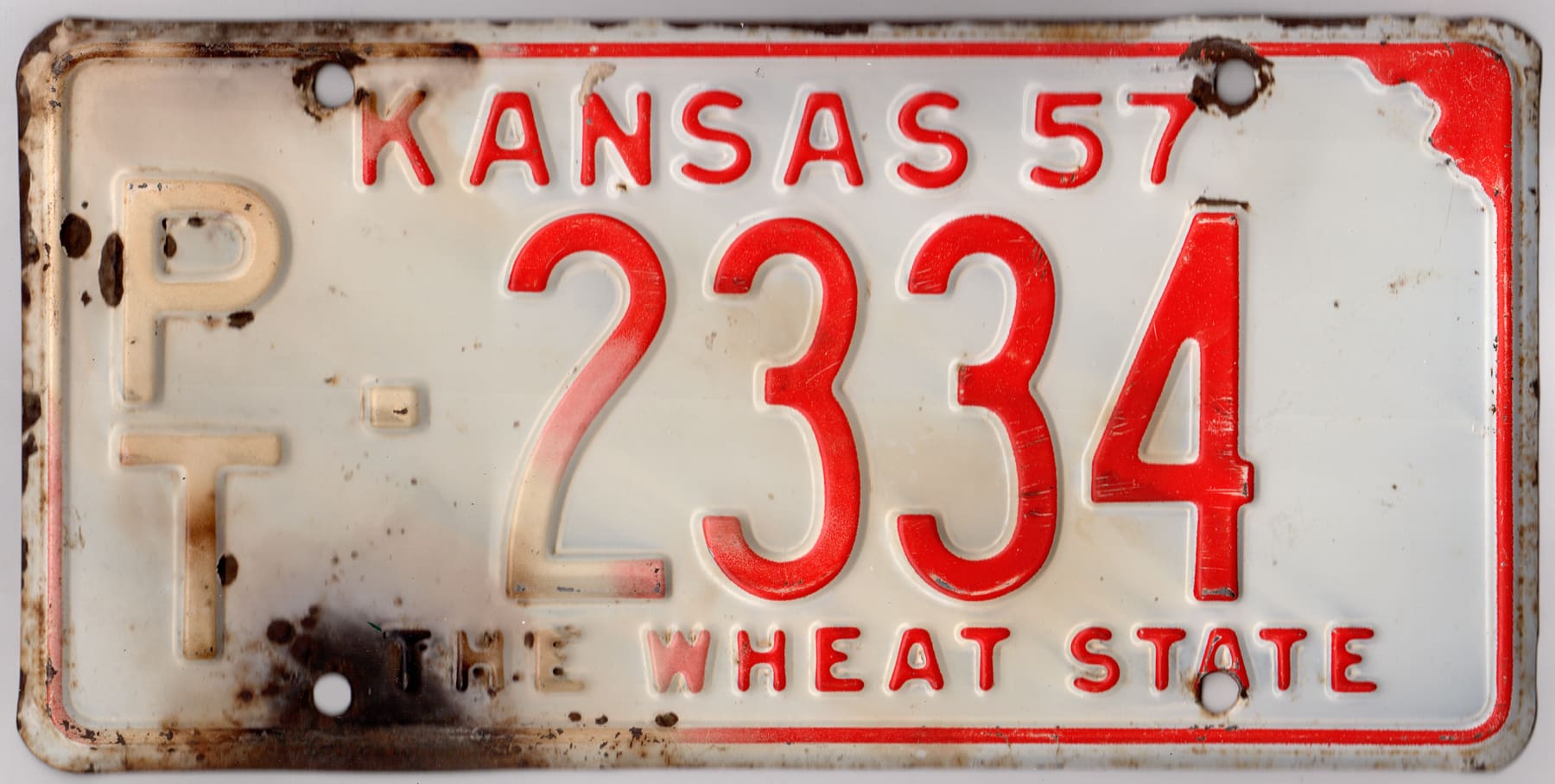 Kansas 1957 car license plate Pottawatomie county #PT-2334