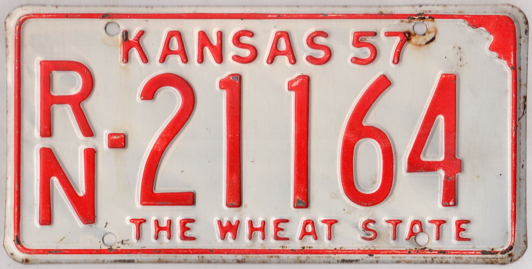Kansas 1957 car license plate Reno county #RN-21164