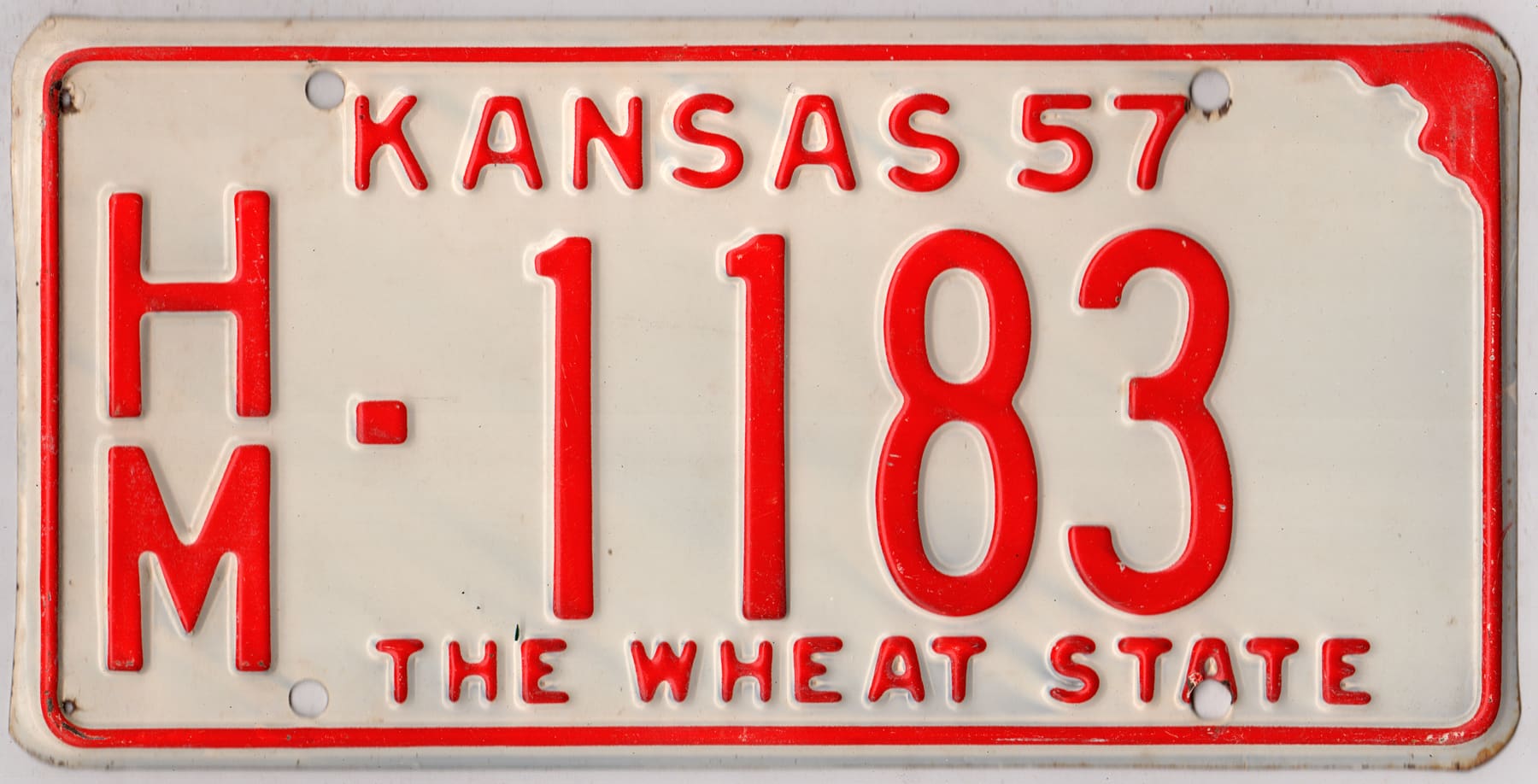 Kansas 1957 car license plate Hamilton county #HM-1183