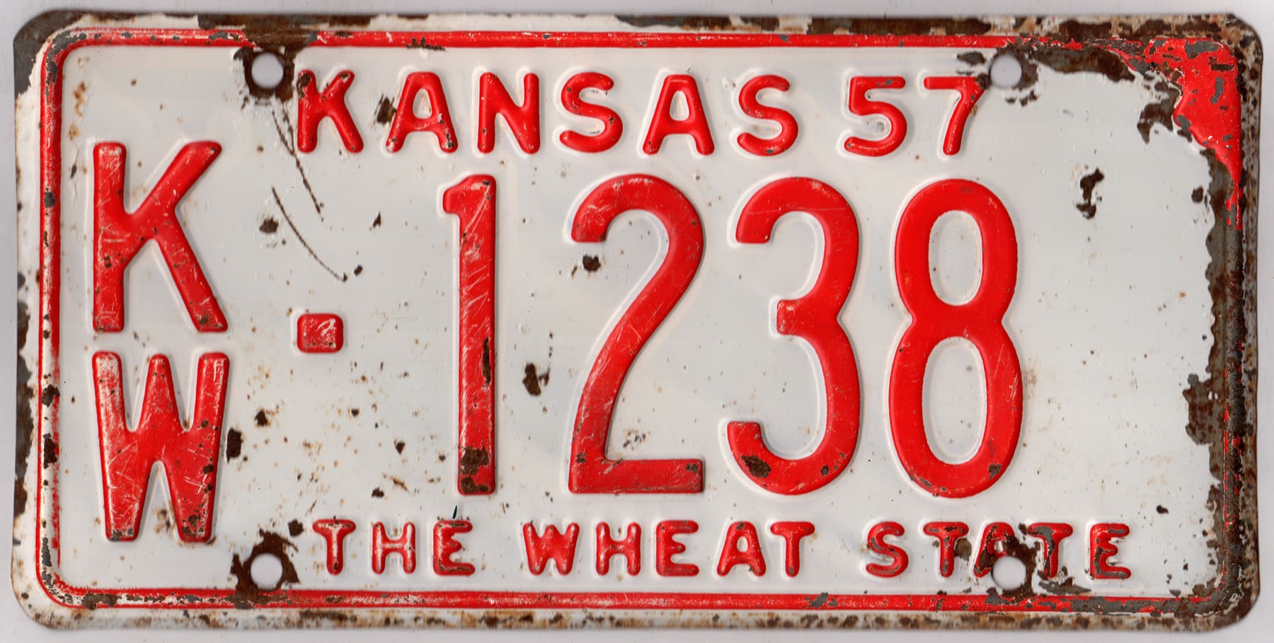 Kansas 1957 car license plate Kiowa county #KW-1238
