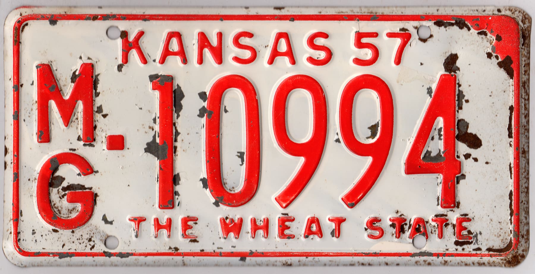 Kansas 1957 car license plate Montgomery county #MG-10994