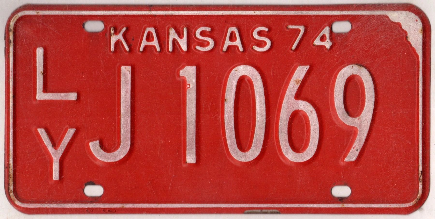 Kansas 1974 car license plate Lyon county #LY J-1069