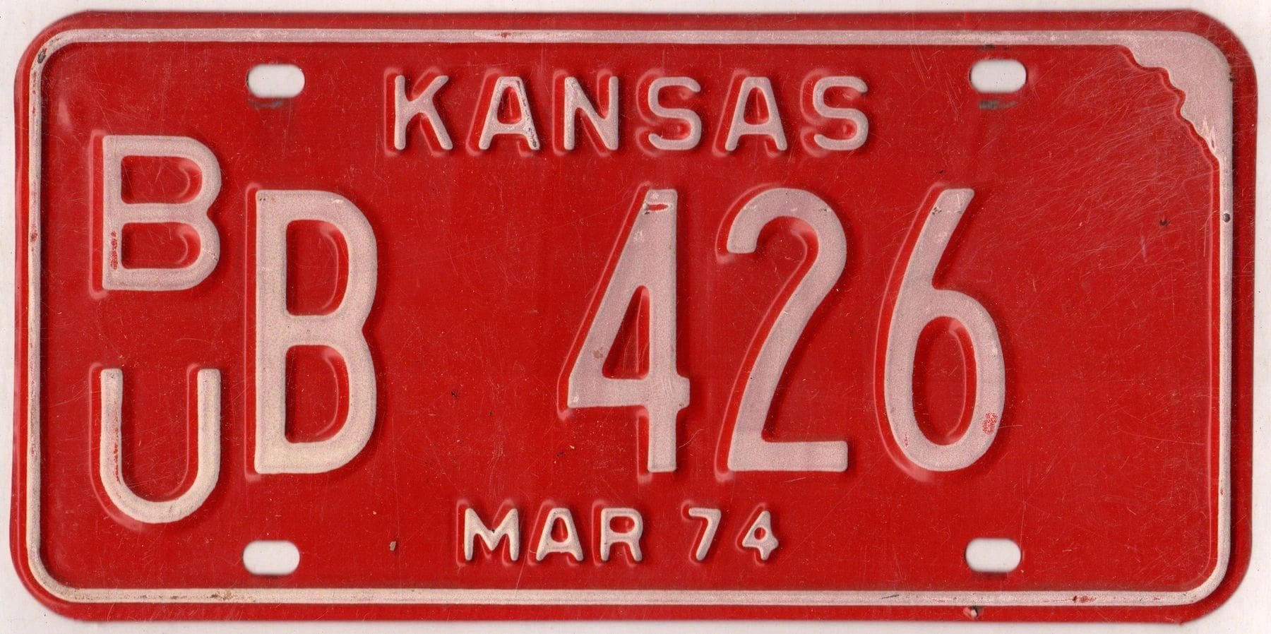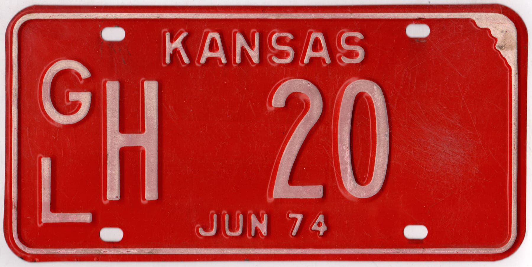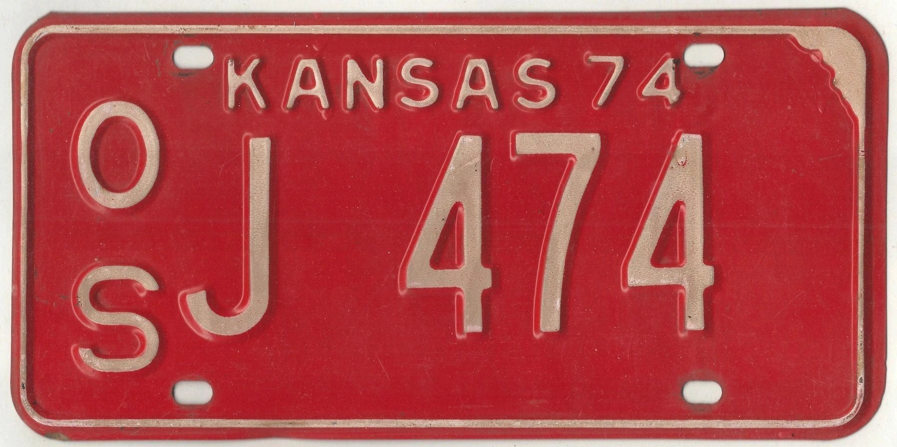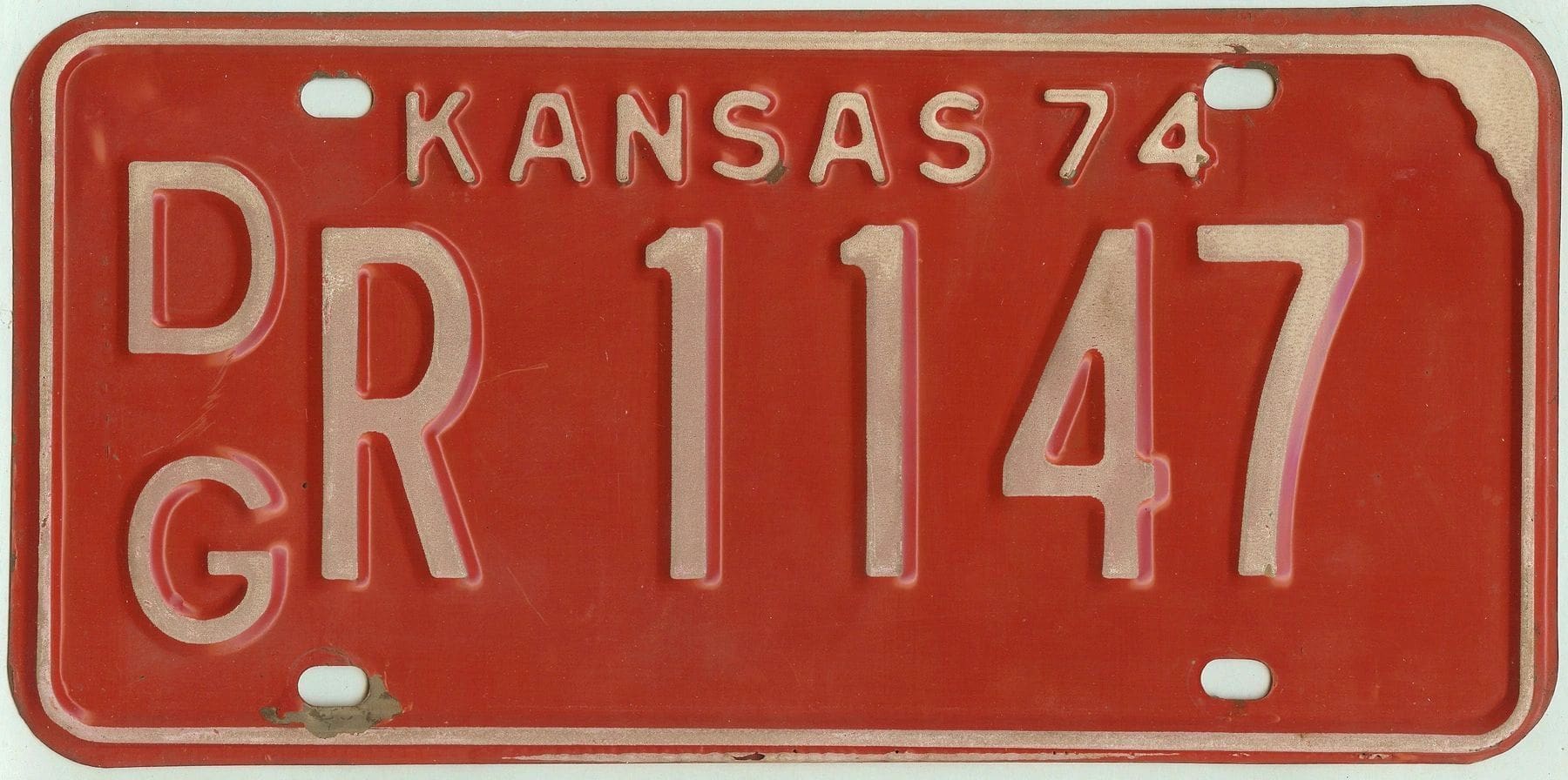 Kansas 1974 car license plate Douglas county #DG R-1174