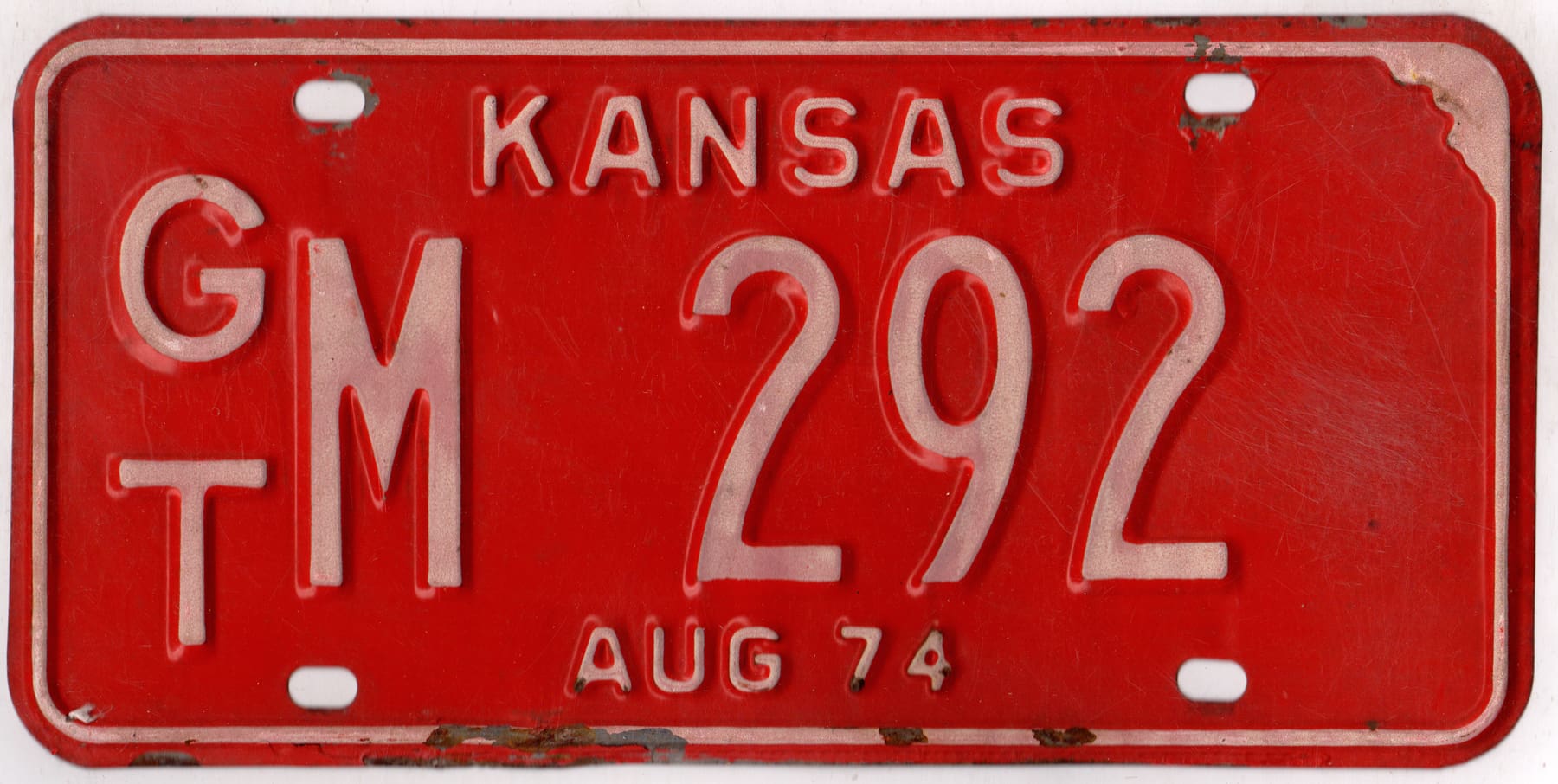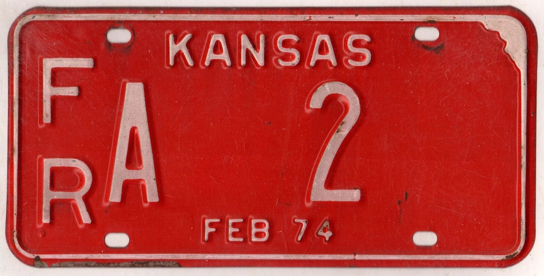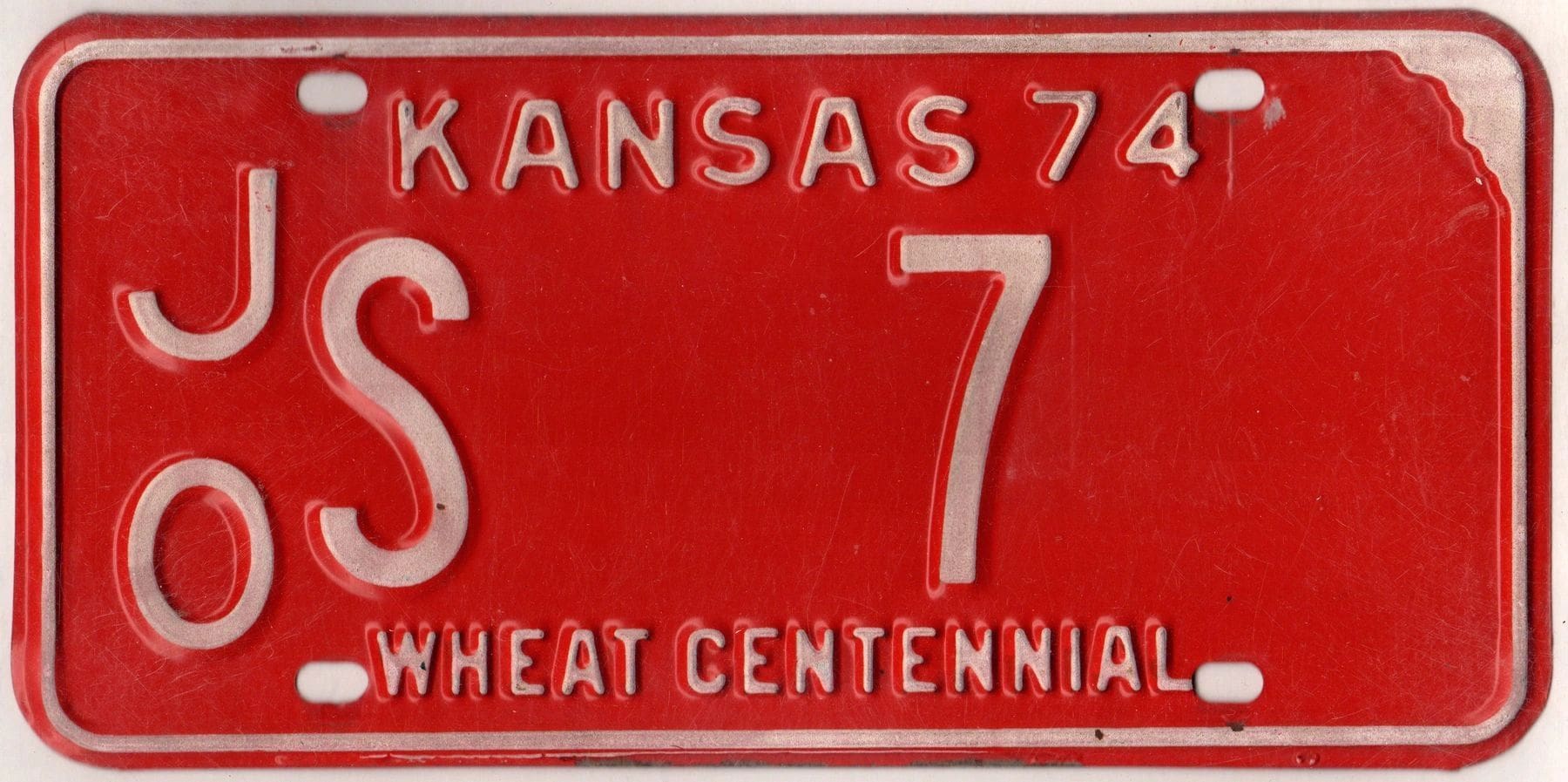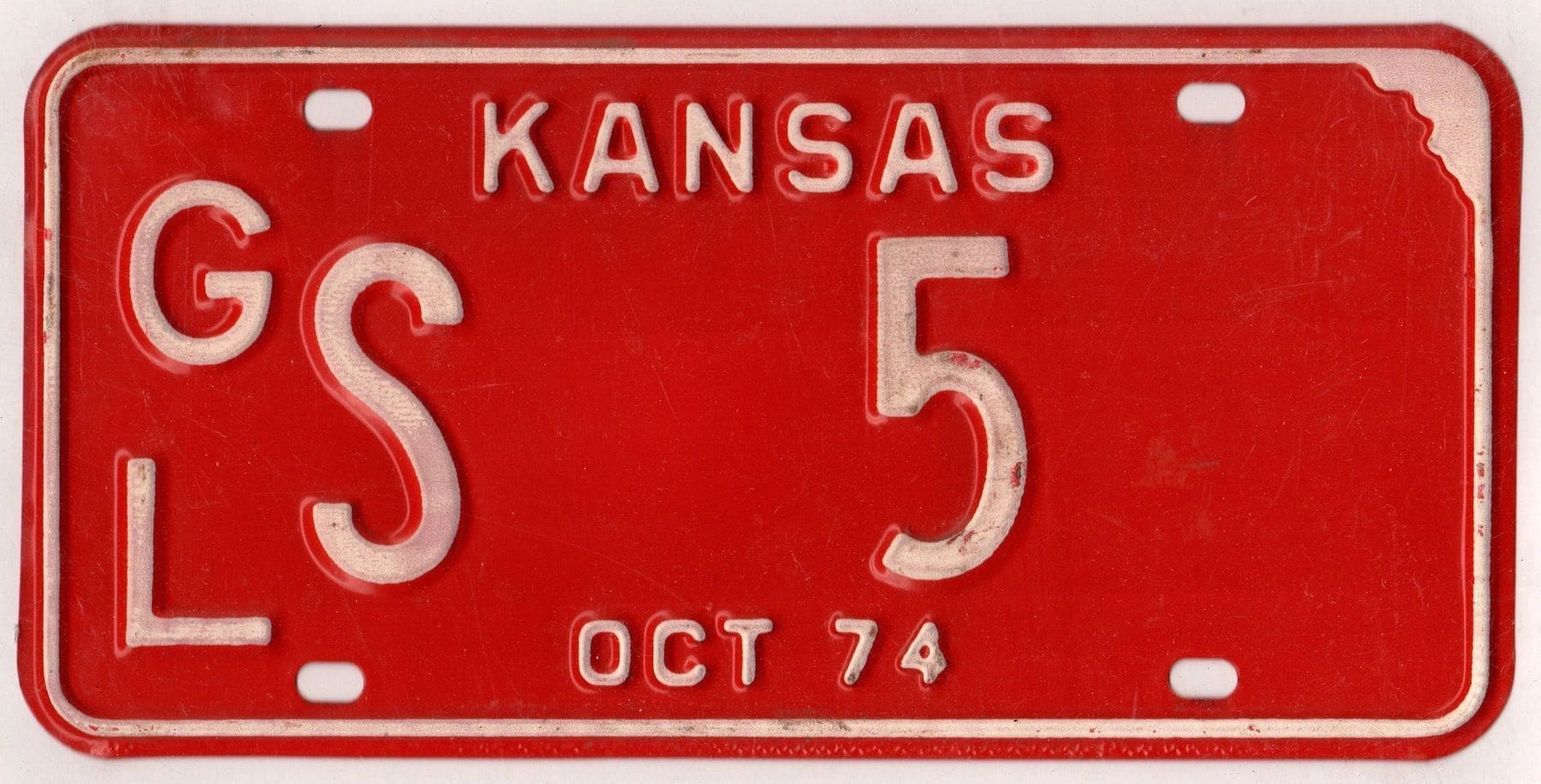 Kansas 1974 car license plate Douglas county #DG R-1174