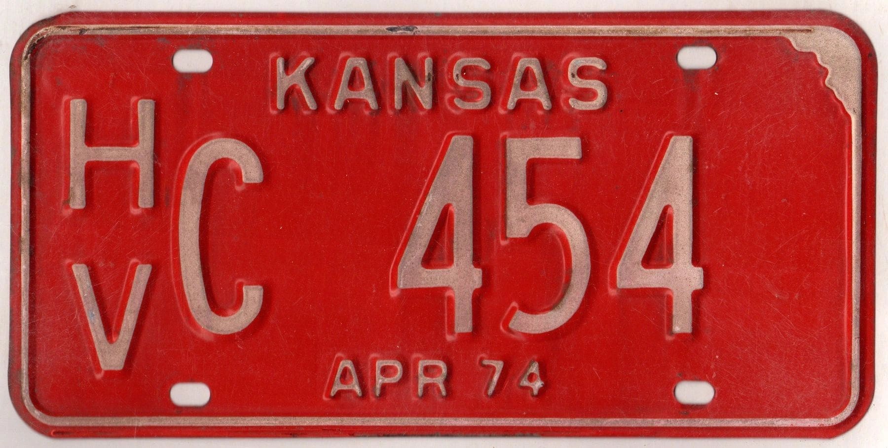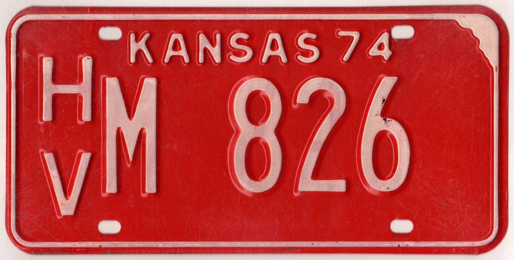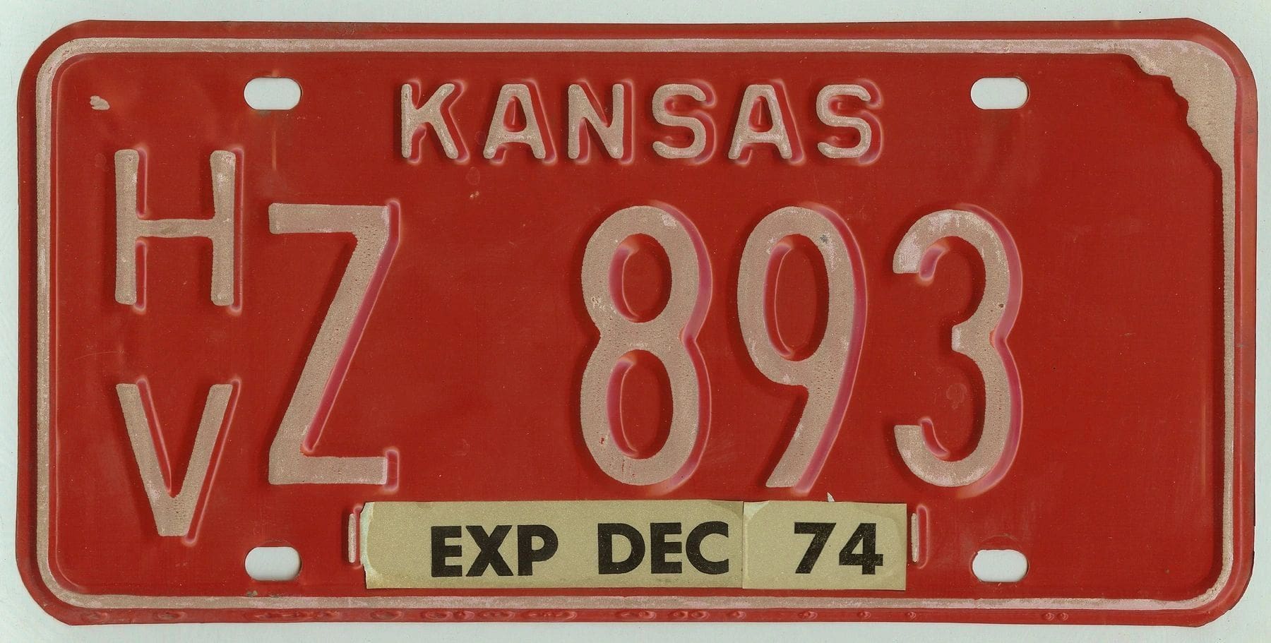 Kansas 1974 car license plate Harvey county #HV Z-893