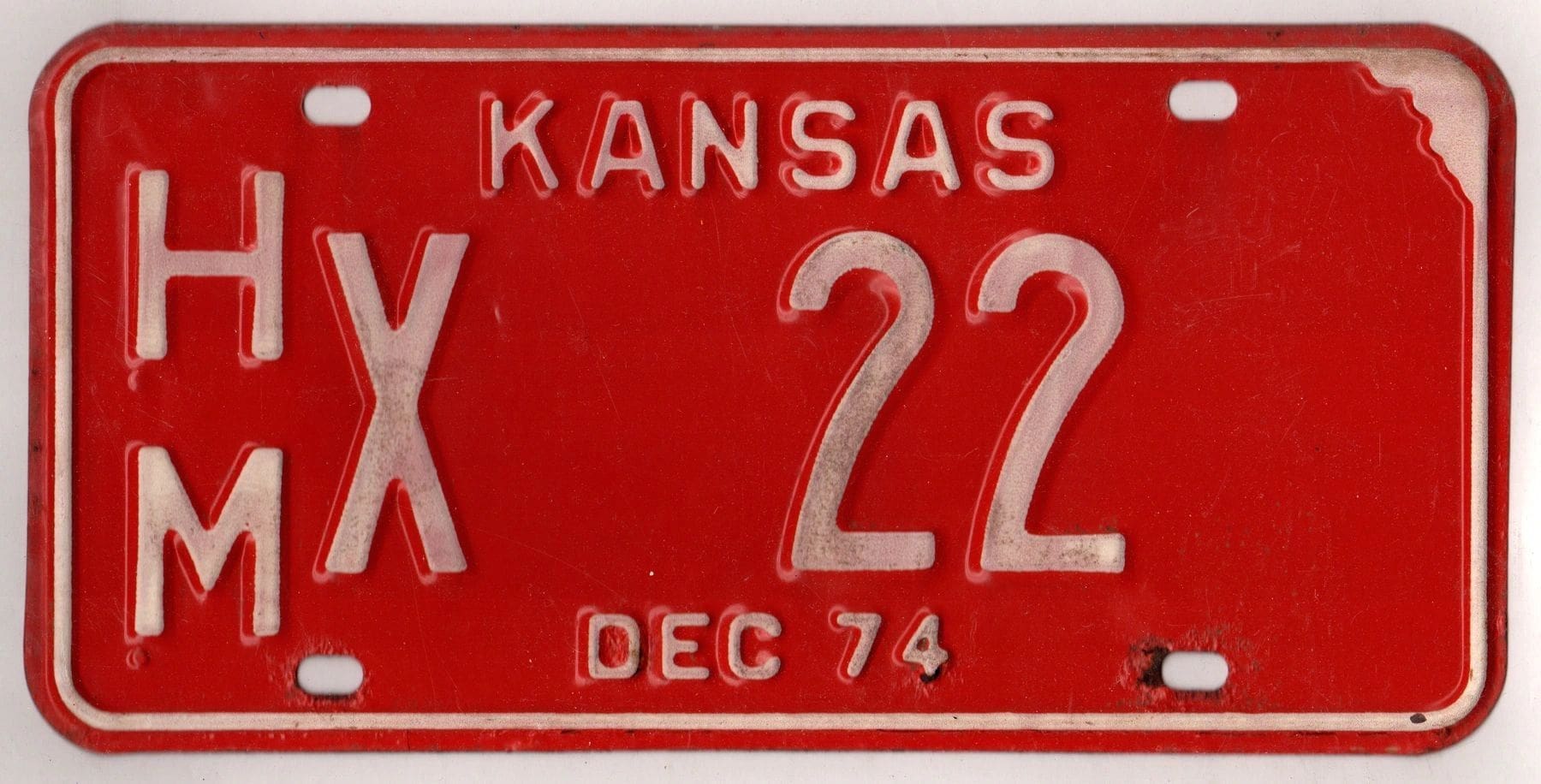 Kansas 1974 car license plate Hamilton county #HM X-22