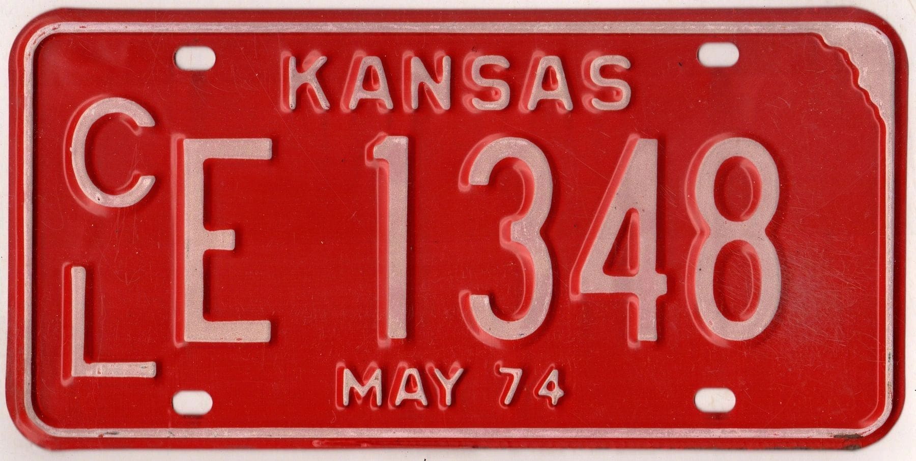 Kansas 1974 car license plate Cowley county #CL E-1348
