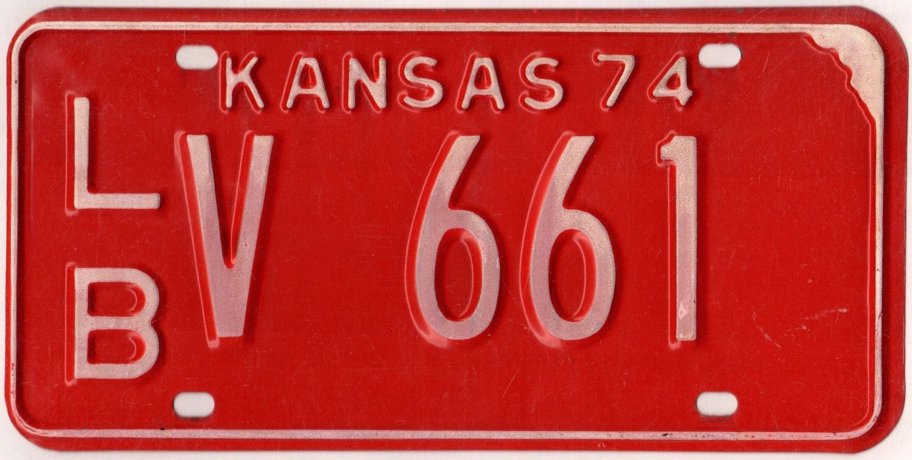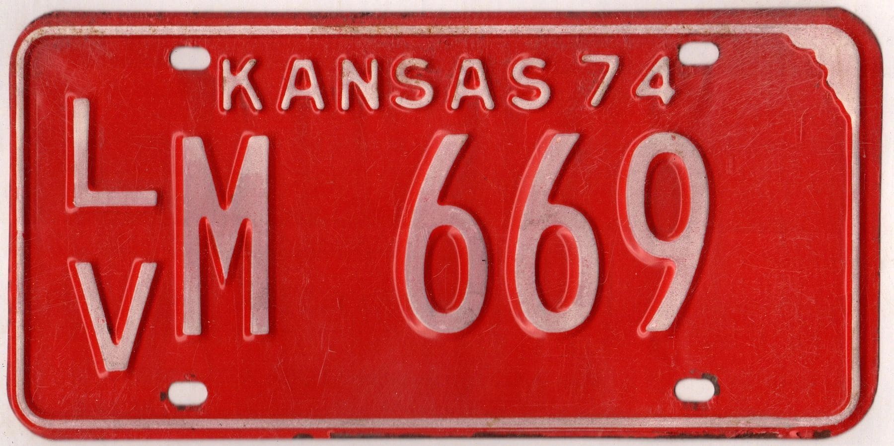 Kansas 1974 car license plate Leavenworth county #LV M-669
