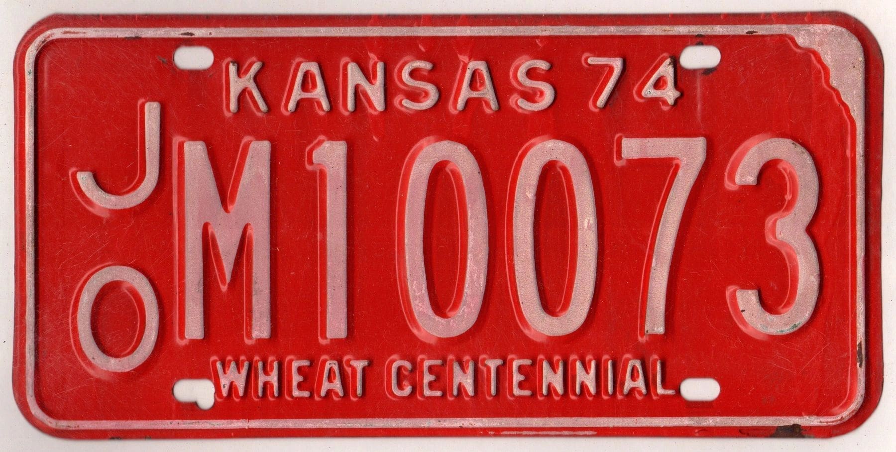 Kansas 1974 car license plate Johnson county #JO M-10073