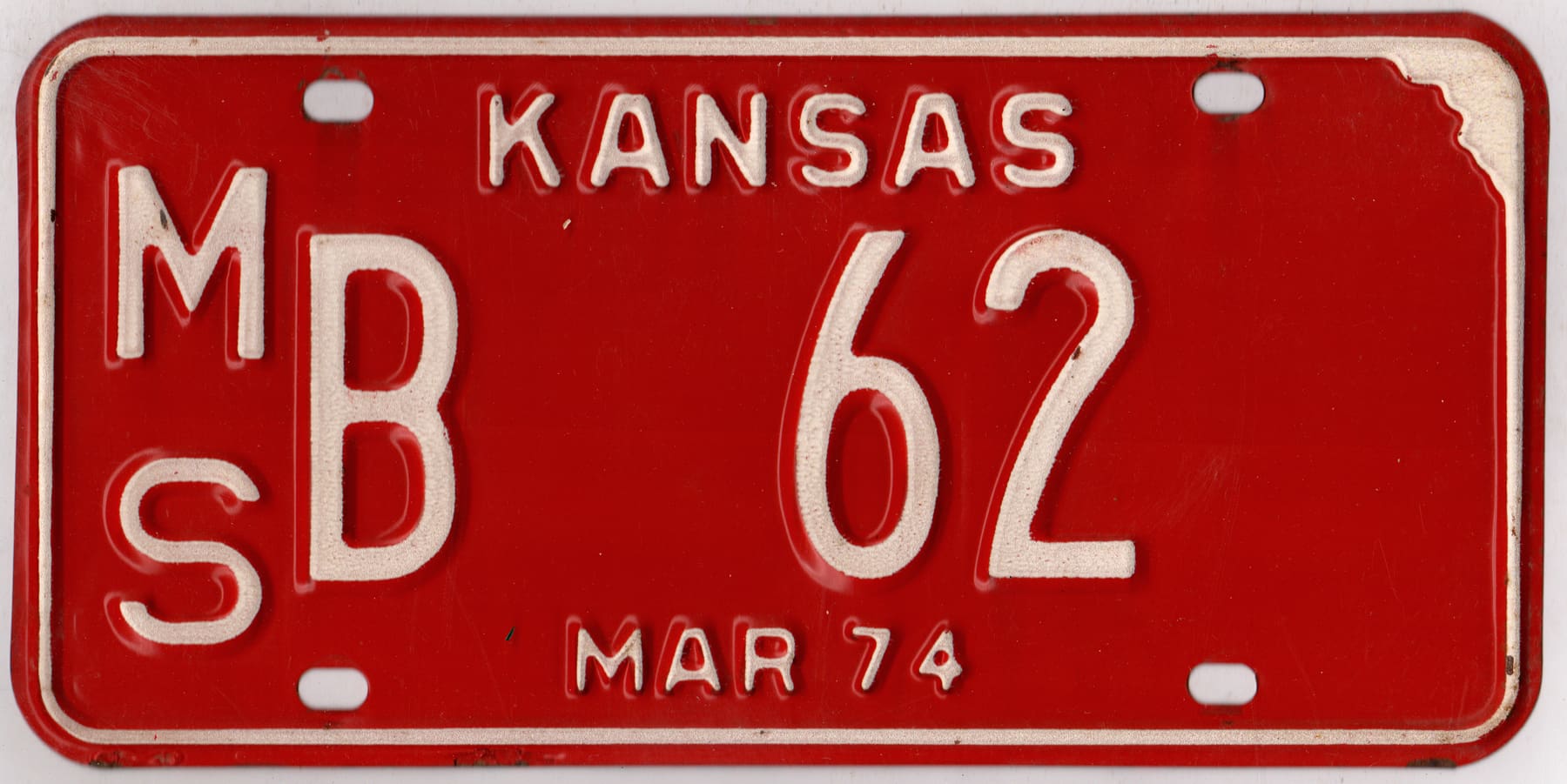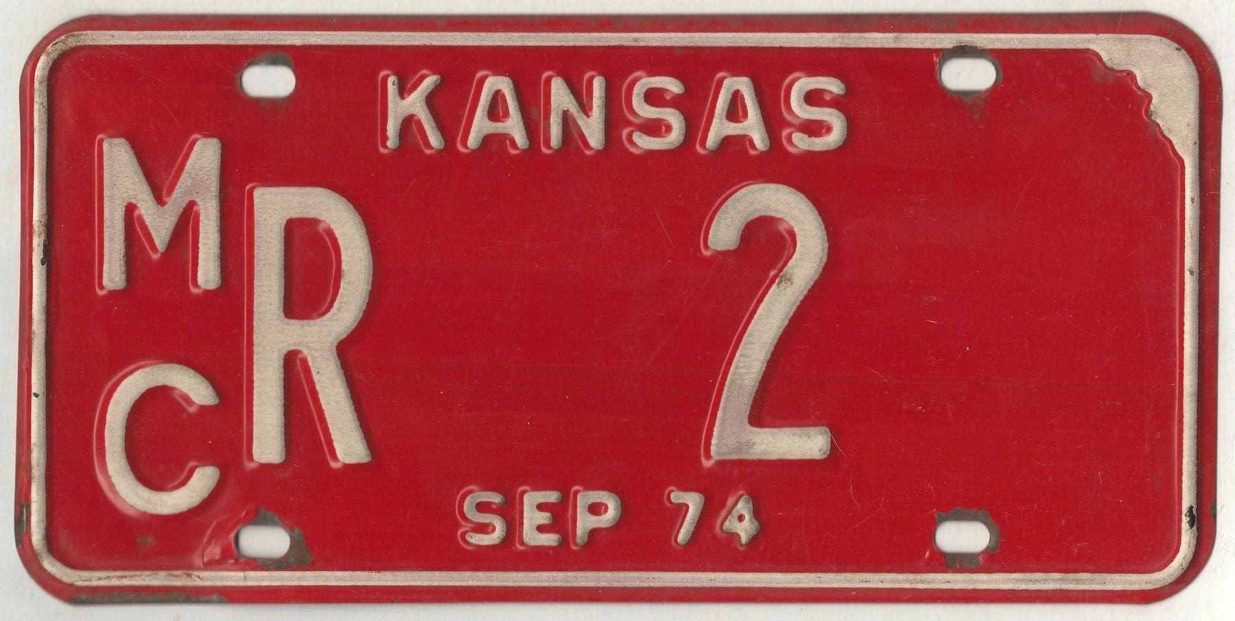 Kansas 1974 car license plate Mitchell county #MC R-2