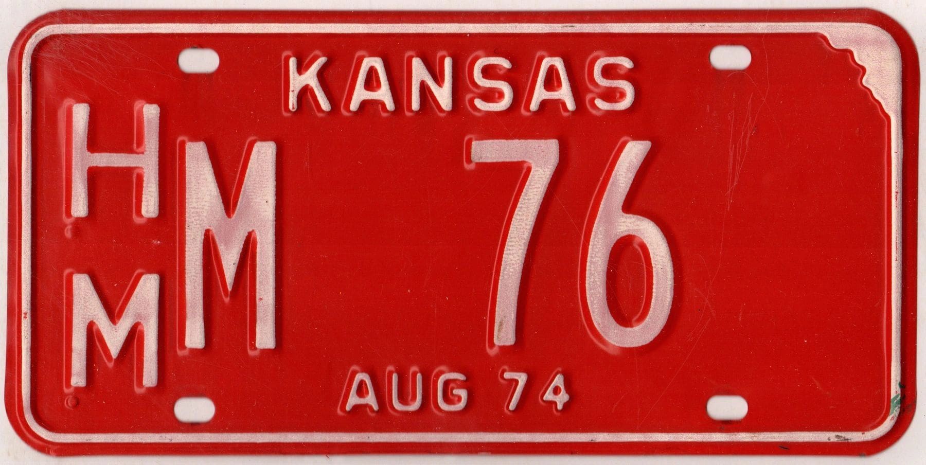Kansas 1974 car license plate Hamilton county #HM M-76