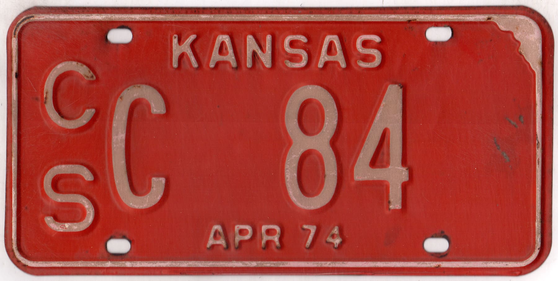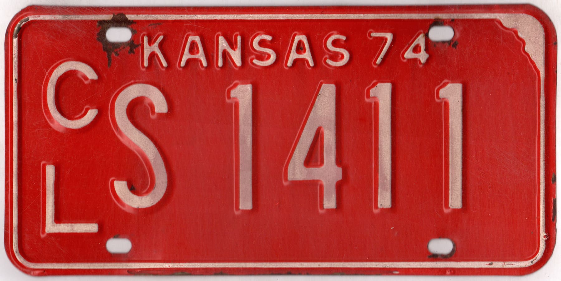 Kansas 1974 car license plate Cowley county #CL S-1411