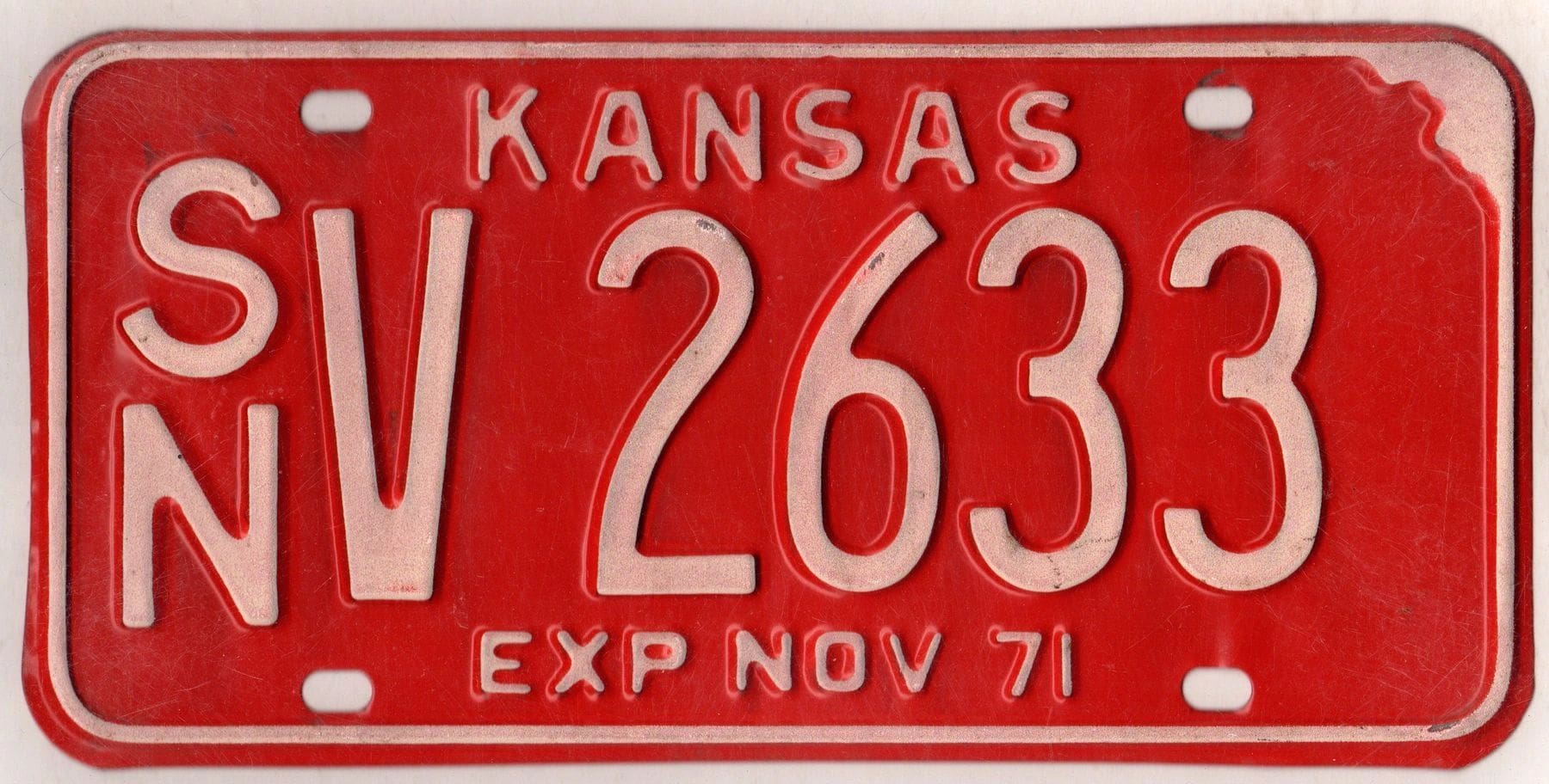 Kansas 1971 car license plate Shawnee county #SN V-2633