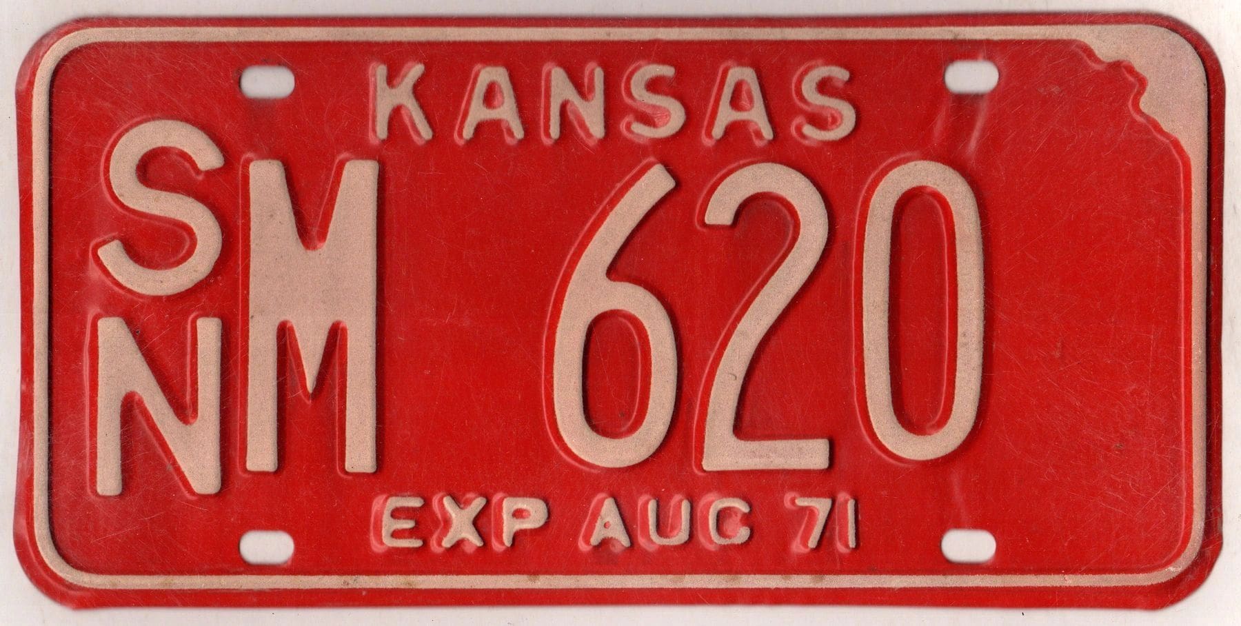 Kansas 1971 car license plate Shawnee county #SN M-620