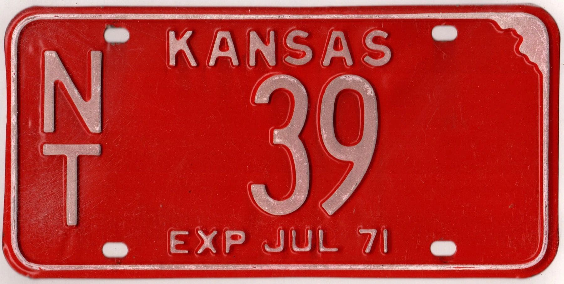 Kansas 1971 car license plate Norton county #NT-39