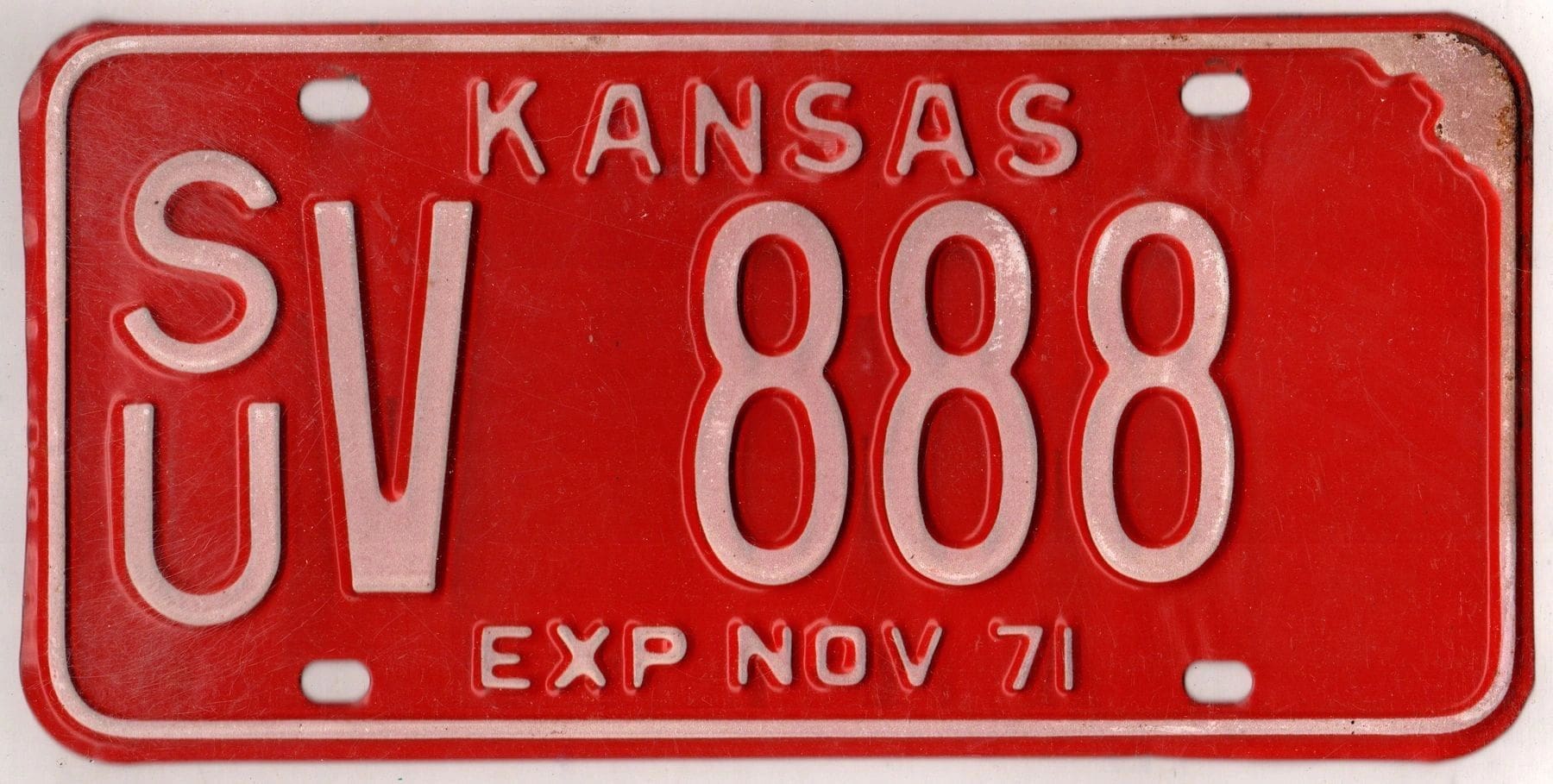 Kansas 1971 car license plate Sumner county #SU V-888
