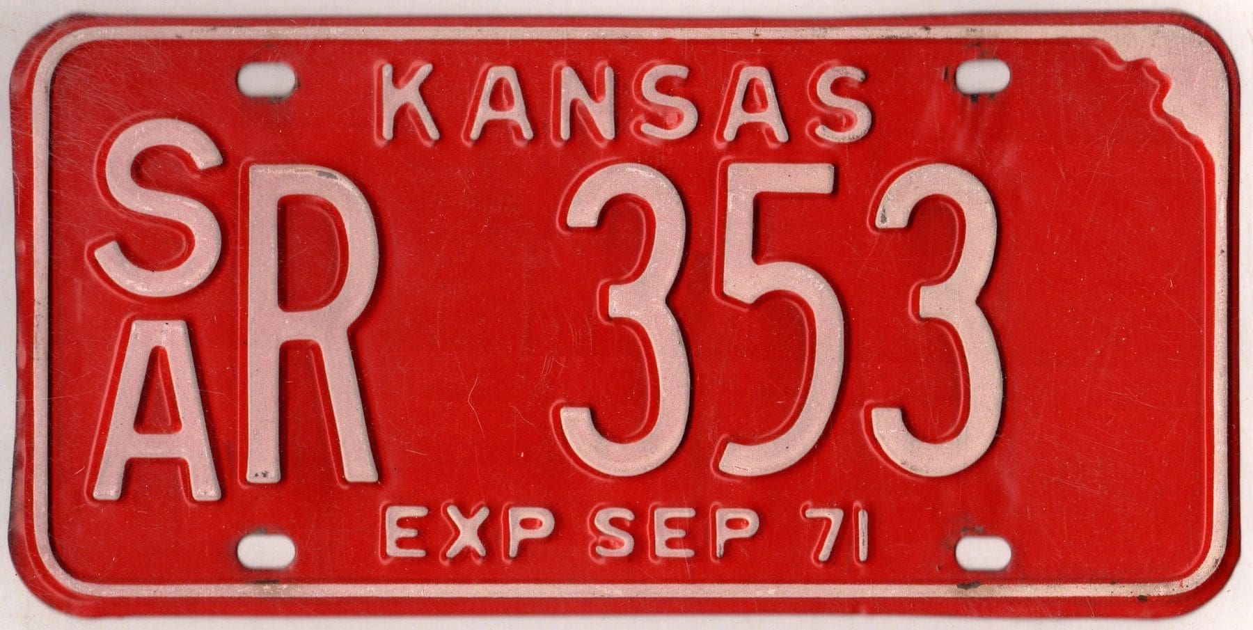 Kansas 1971 car license plate Saline county #SA R-353