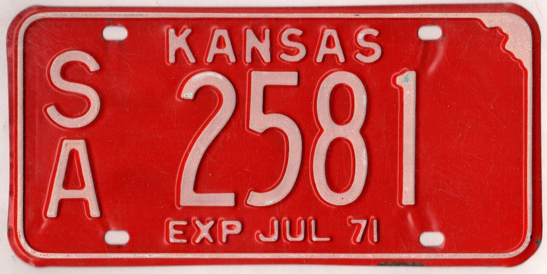 Kansas 1971 car license plate Saline county #SA-2581
