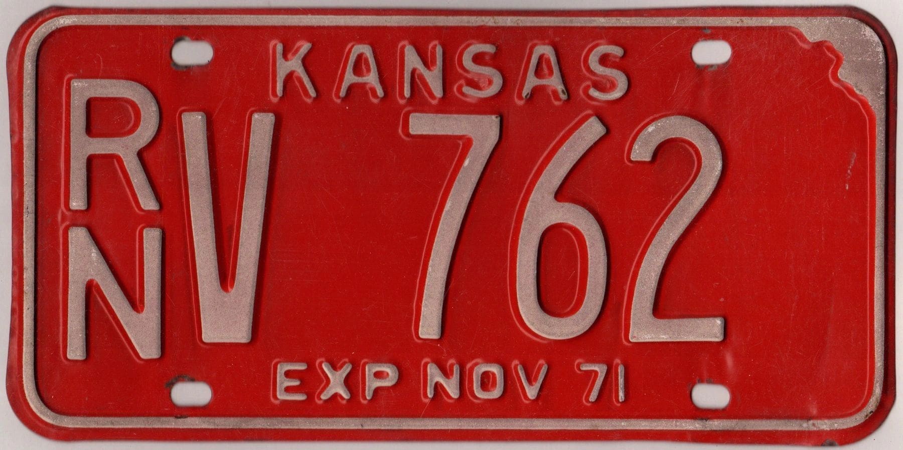 Kansas 1971 car license plate Reno county #RN V-762