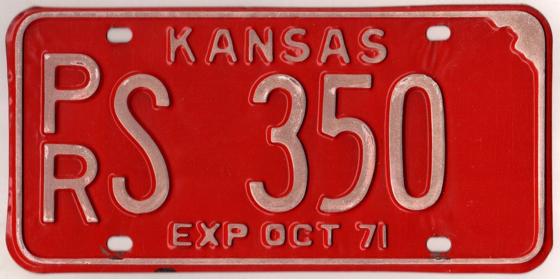Kansas 1971 car license plate Pratt county #PR S-350