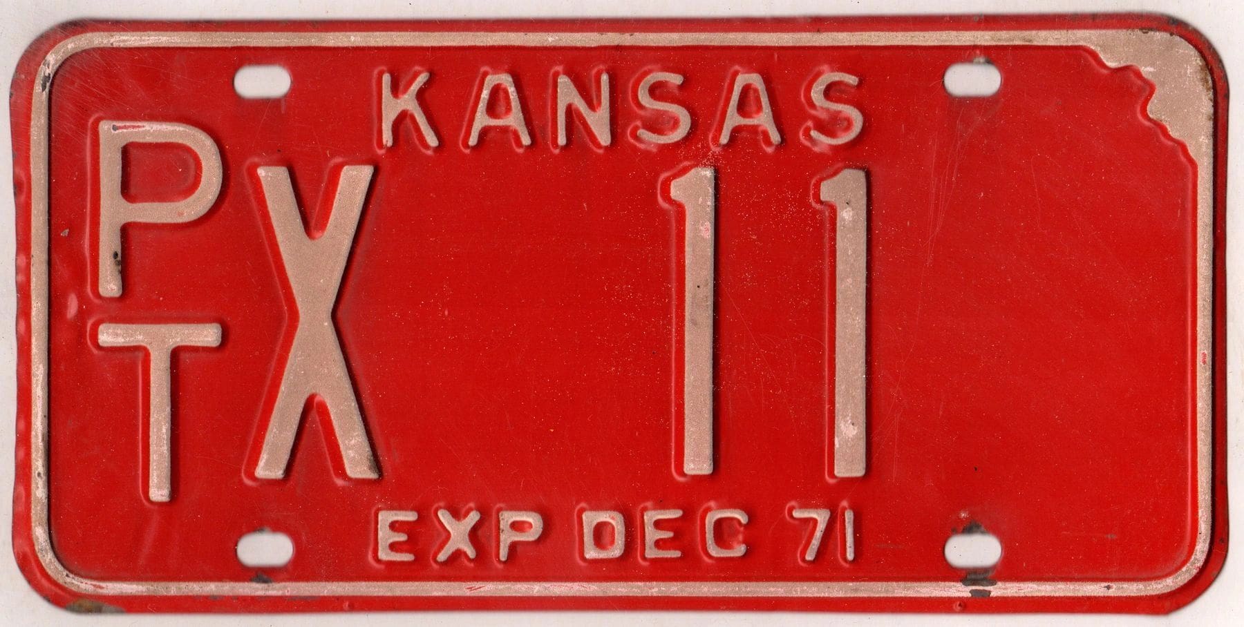 Kansas 1971 car license plate Pottawatomie county #PT X-11