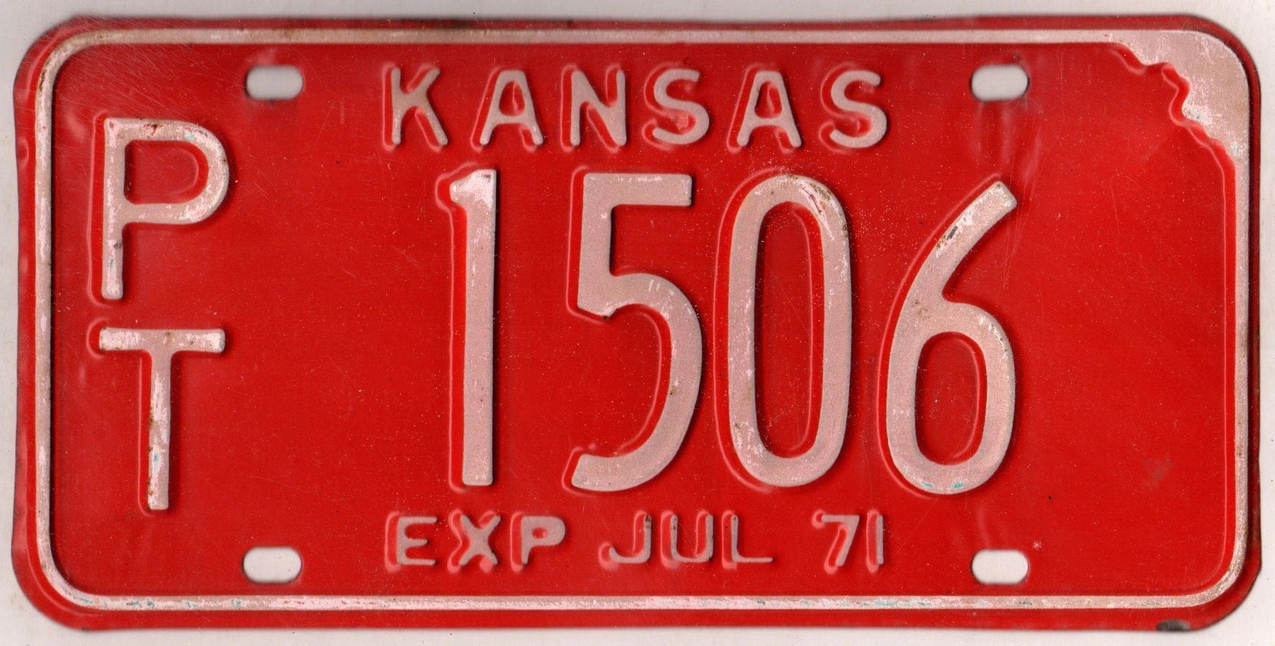 Kansas 1971 car license plate Pottawatomie county #PT-1506
