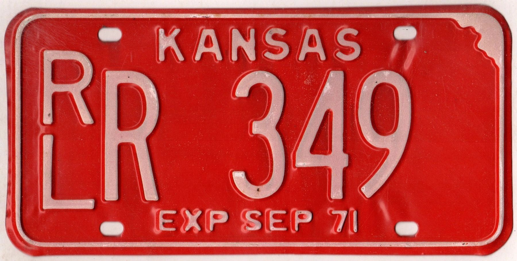Kansas 1971 car license plate Riley county #RL R-349