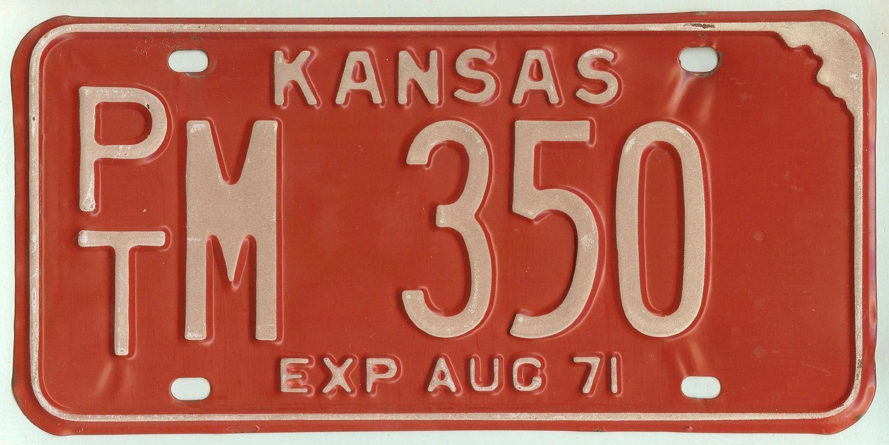 Kansas 1971 car license plate Pottawatomie county #PT M-350