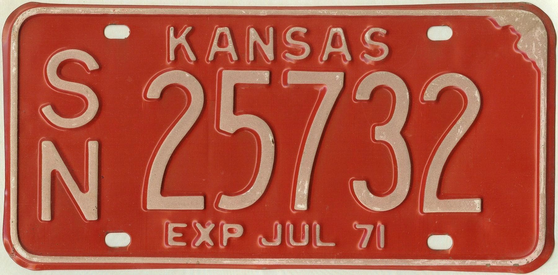 Kansas 1971 car license plate Shawnee county #SN-25732
