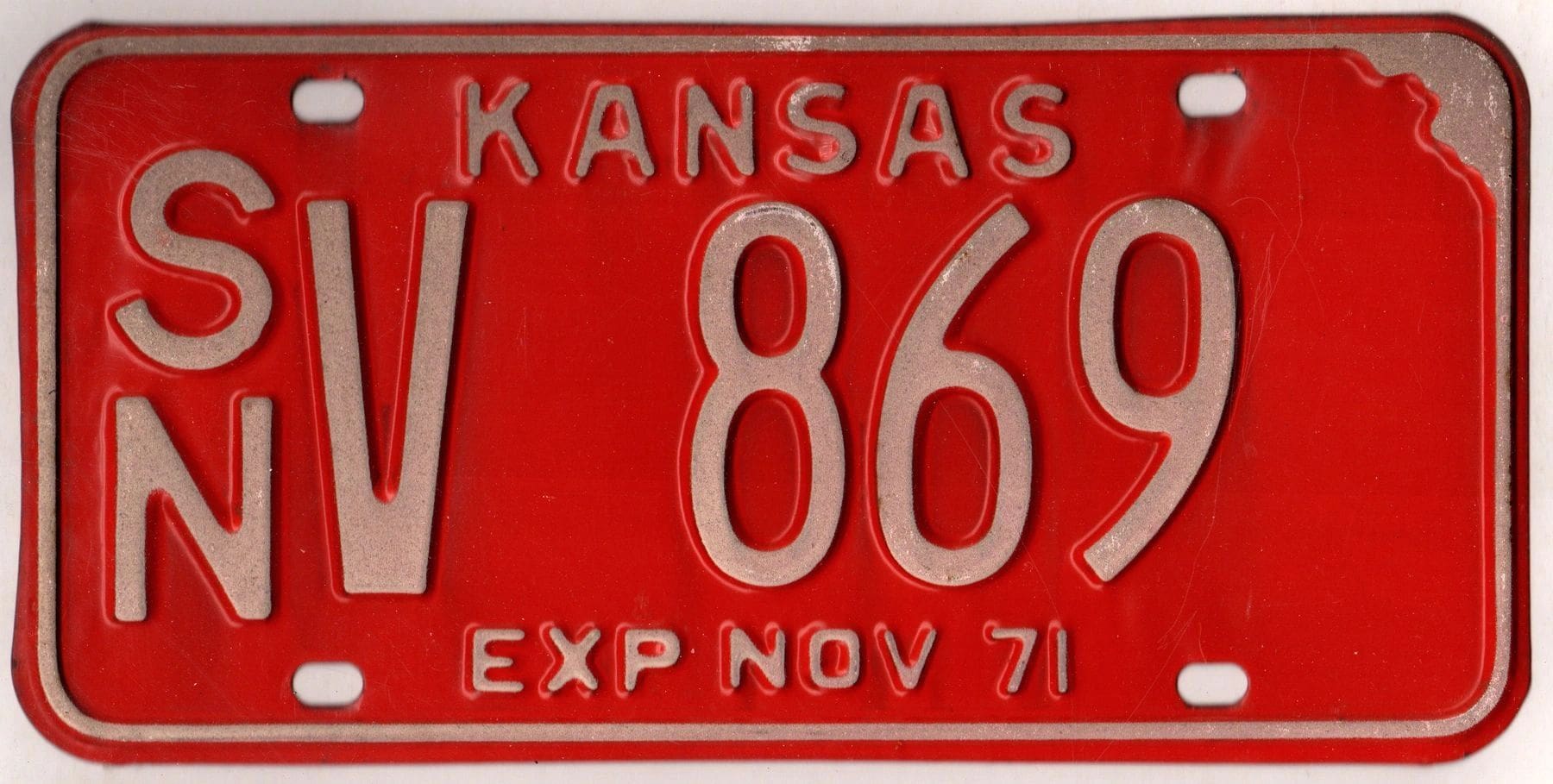 Kansas 1971 car license plate Shawnee county #SN V-869