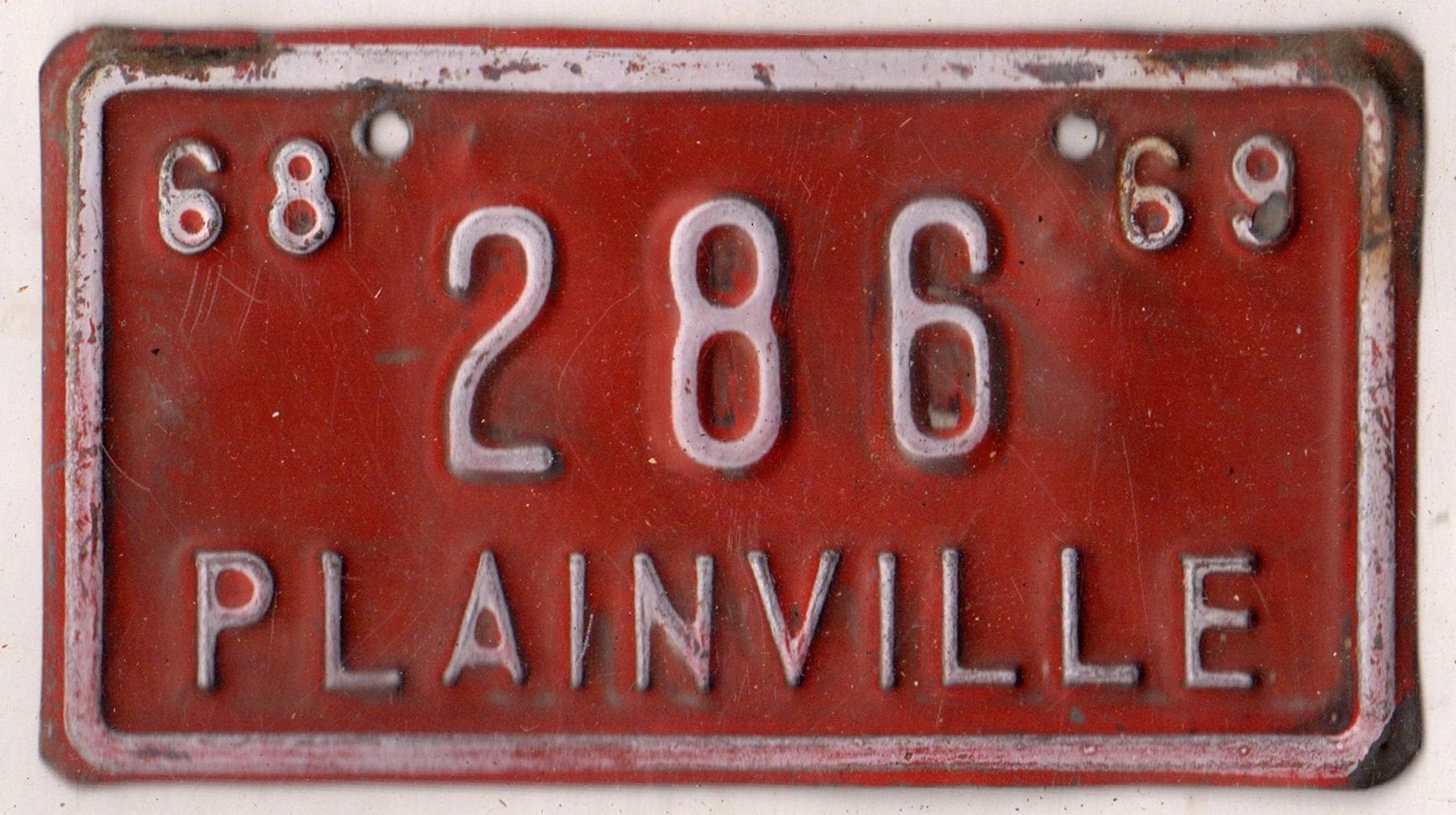 Kansas 1968 1969 Plainville bicycle license plate #286