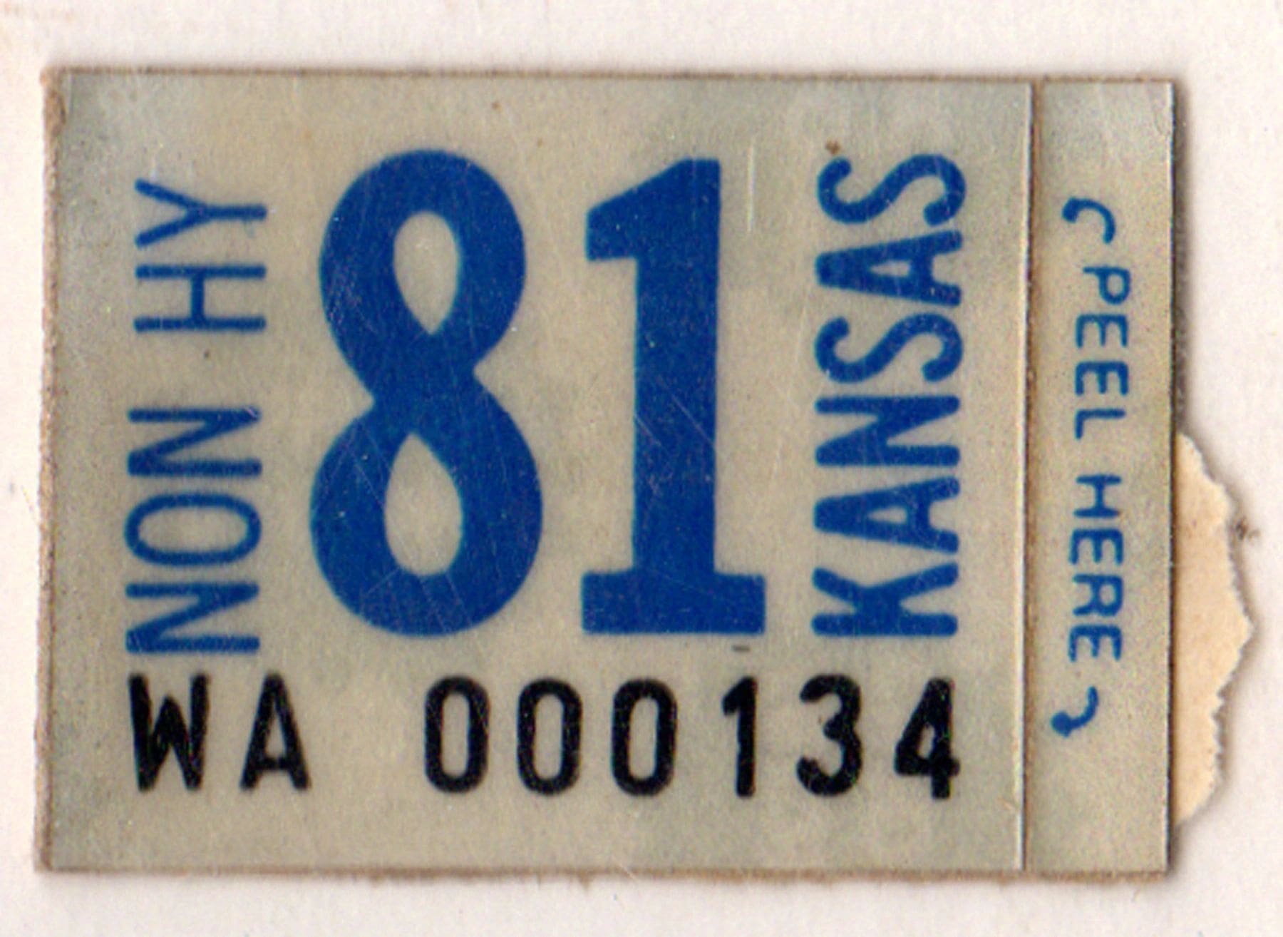 Kansas 1981 non highway license plate sticker #WA-000134