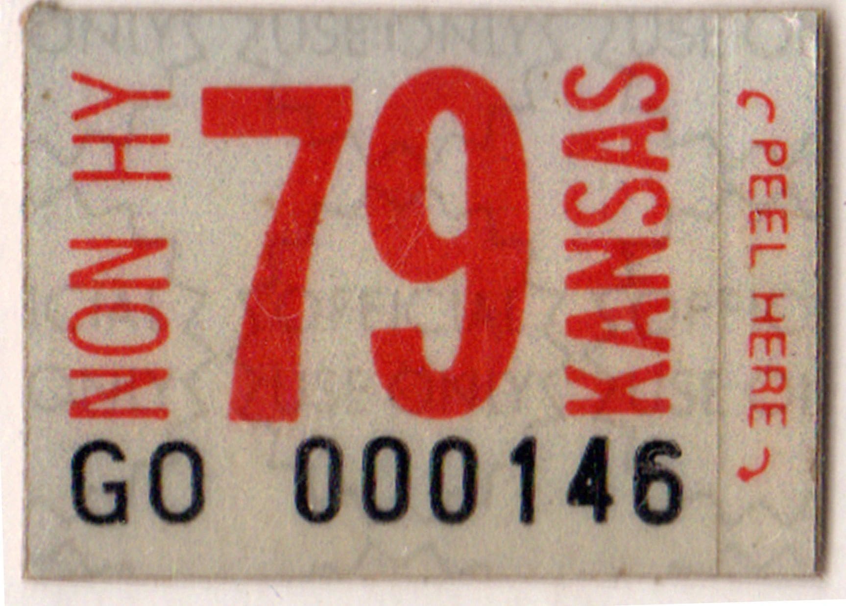 Kansas 1979 non highway license plate sticker